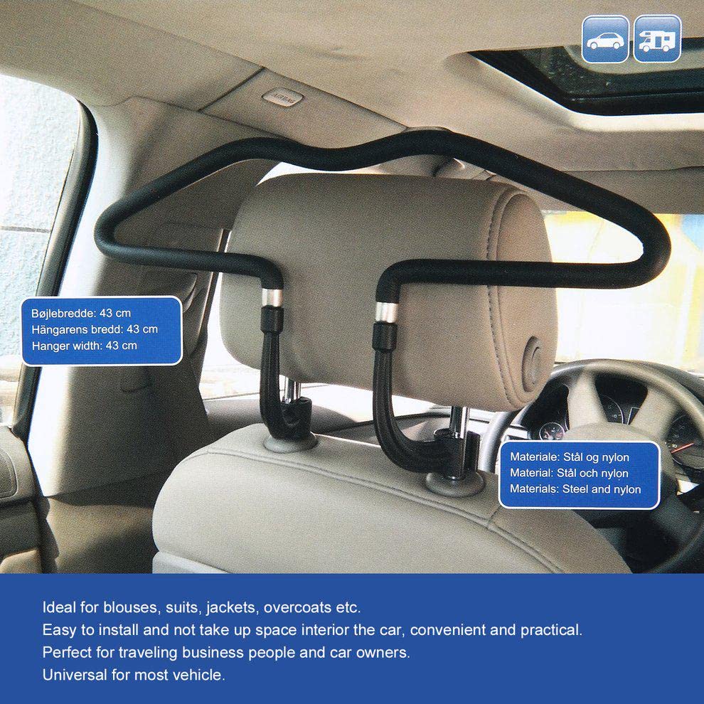 KEEP CLOTHES NEAT AND CLEAN – The Car Seat Coat Rack Hanger will keep your clothes clean and wrinkle-free while traveling. Just hang them safely in place to look tidy during important occasions. KEEP CLOTHES NEAT AND CLEAN – The Car Seat Coat Rack Hanger will keep your clothes clean and wrinkle-free while traveling. Just hang them safely in place to look tidy during important occasions. EASY TO INSTALL- The Stainless steel Car Seat Coat Rack Hanger attaches easily to the car seat's headrest and does not obstruct the driver's view. No tools required. They slide between the bars of your seat's headrest keeping the clothing neat and off the ground. SPACE SAVING & WRINKLE-FREE : Converts the headrest into a storage space to hang clothes, garments, shirts, jackets, suits, blazers, coats, bags, backpacks, handbags, garbage bags and etc. Large shoulder fix your jacket shoulder's angle without wrinkling. Although you hang clothes, there are enough rear room for backseat. COMPATIBLE WITH ALMOST MODEL OF VEHICLE : black automotive back seat coat hanger fits most automobile headrest with two support pole, for example sedan, SUV, van, truck, Trailer truck, bus and any cars. Perfect for traveling business people and car owners. And Not take up space interior the car, convenient and practical DURABLE : The Stainless steel Car Seat Coat Rack Hanger are made of sturdy metal and plastic construction that will last long.