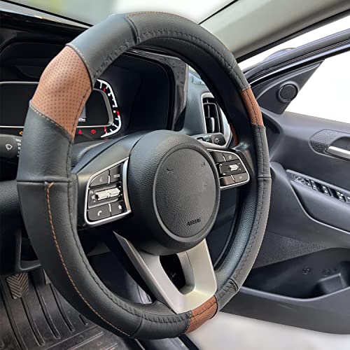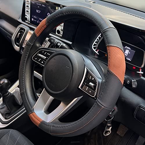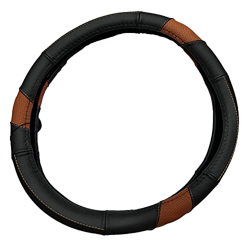 Oshotto SC-009-A Fiber Leather Car Steering Cover Compatible with Ford Freestyle (Black Tan)