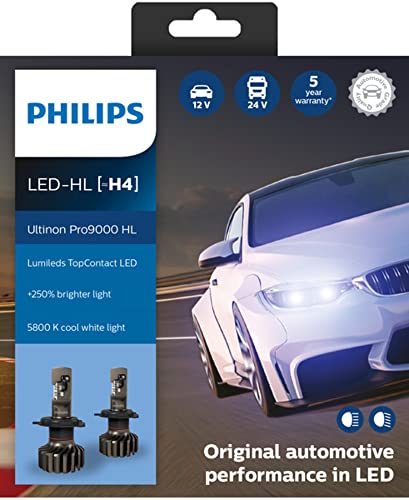 Philips Automotive H4 Ultinon Pro9000 11342U90Cwx2 LED Headlight Bulb For Car 12-24V 18W, P43T, Pack Of 2, Silver