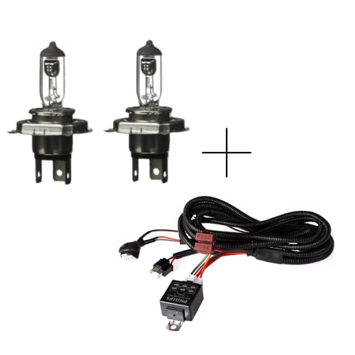 PHILIPS Rally 12569RAC1 P43T H4 Bulb (12V, 100/90W, Set of 2) and Philips 12003XM H4 Heavy Duty Relay Wiring Kit for High Power