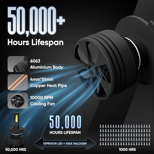 Compact Design & Easy Installation - Short-sized LED headlight for car with plug-n-play socket to socket design. No extra wiring required, making installation quick and hassle-free IP68 waterproof - PRIVON LED car headlight bulb is IP68 rated, ensuring reliable performance in rain, snow, and dust as well as protected against water and environmental damage External CANBUS Intelligent Temperature Control Driver - Error free compatibility with 99.9% of Indian cars, providing stable performance and enhanced safety with no flickering or dashboard errors. Better than HID headlight for car Life span of 50,000 hours - Enjoy longer lifespan with noise free 5G mute fan rotating at 10000 RPM, ensuring your LED light for car headlight last for years to come 2 years replacement guarantee - PRIVON LED bulbs for car headlight come with a comprehensive 2 years replacement guarantee, ensuring you get the support and quality you deserve