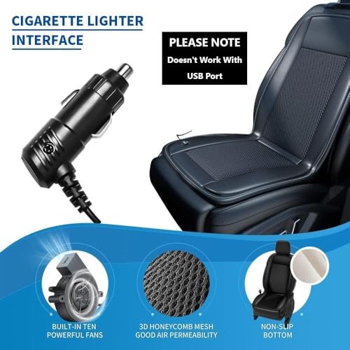 RIGGEAR Cooling Car Seat Cushion/Ventilated Seat Cover with 10 Inbuilt Fans and 3 Speed Control (Premium Breathable Fabric + Leatherette | Beige | for Driver Seat, Pack of 1)
