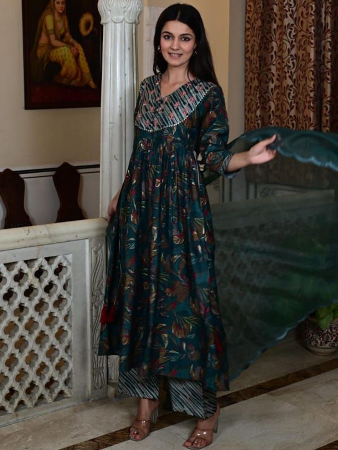 Ruii FASHION Women Ethnic Motifs Printed Regular Pure Cotton Kurta with Trousers & Dupatta