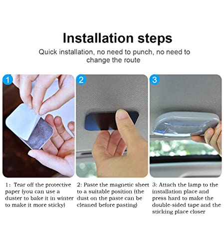 Easy to Install - No Damage Installation, use double-sided tape to secure the magnet and easily mount the lamp on the car's ceiling. You can install it anywhere.