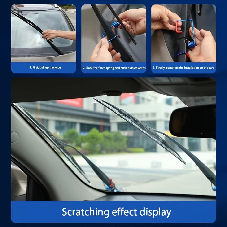 Improved Wiping : Pressurized wipers are fixed to the windshield to remove vibrations and provide a better view of the vehicle. Optimized wiper-to-windshield contact. Long-lasting Reliability : Our springs are designed to work in all weather conditions, maintaining consistent pressure to ensure optimal performance rain or shine. Universal for All Vehicles : Extends wiper life and ensures better windshield wiping, efficient cleaning of mud, snow and ice, and saves on washer fluid costs. Enhanced Vision Kit : A great choice for improving the performance of your wiper system. Easily add extra springs to ensure a clear windshield for a safe and comfortable driving experience. Easy Installation : Simple setup saves you time installing, leaving you more time to experience the extra performance and driving pleasure in rainy and snowy weather.