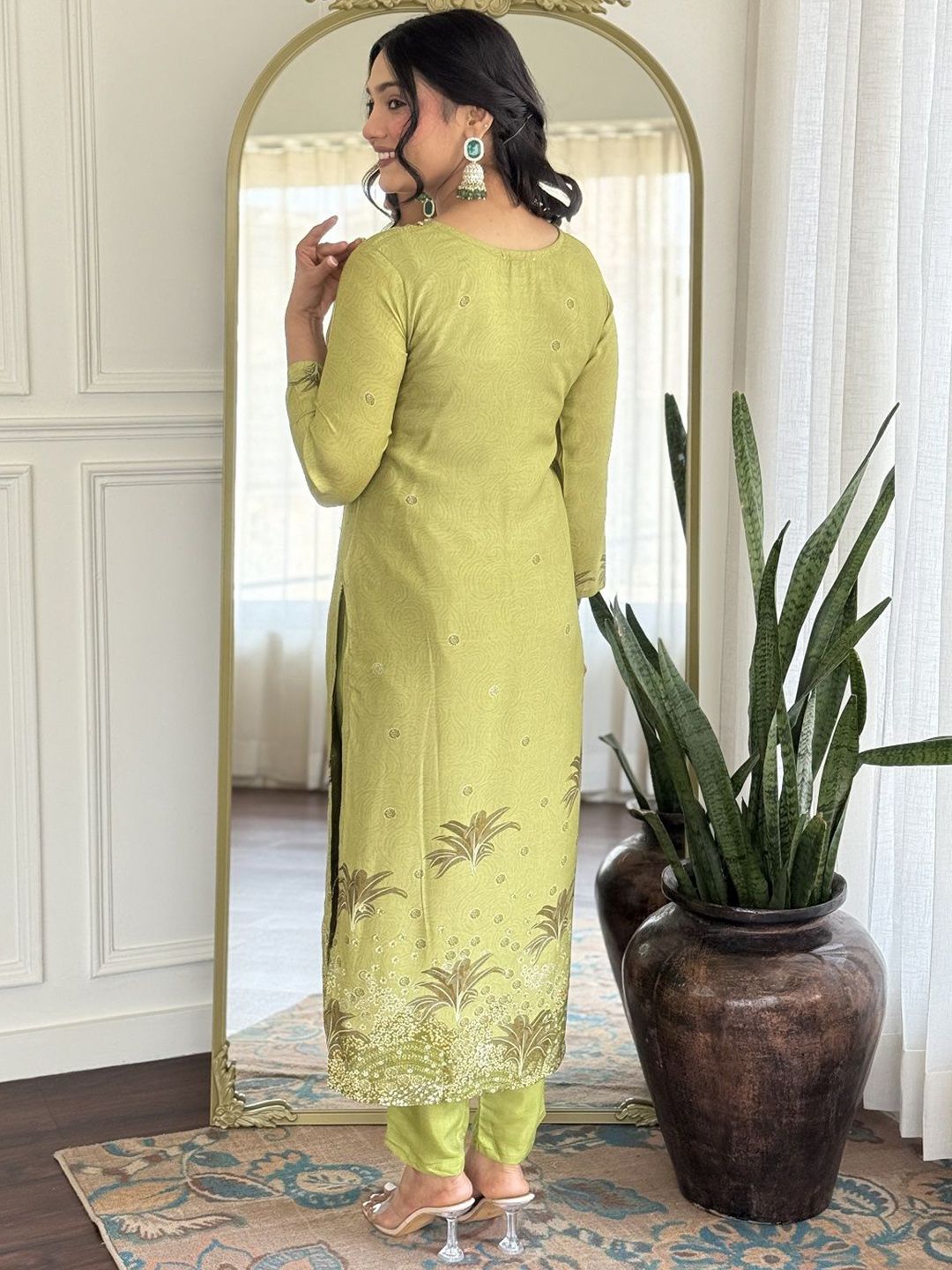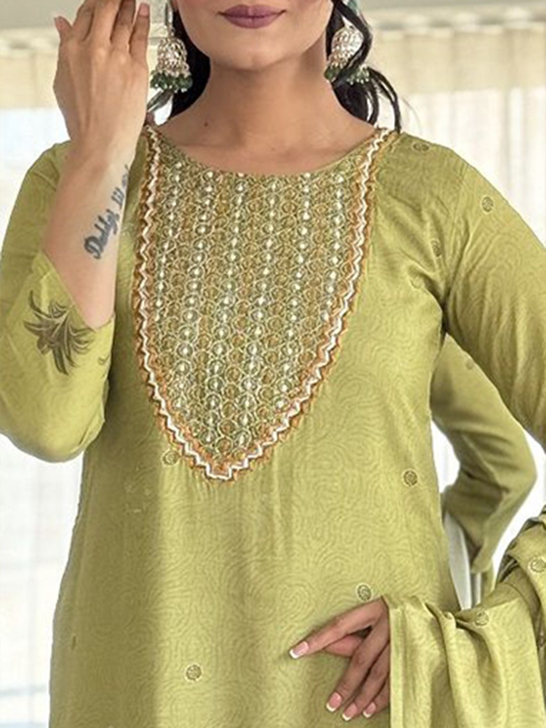 S.K.C Ethnic Motifs Yoke Design V-Neck Pure Cotton Straight Kurta With Trousers & Dupatta