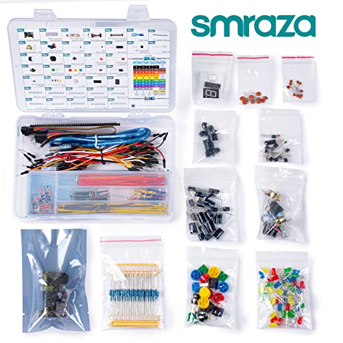 Smraza Electronics Component Fun Kit with Power Supply Module, Jumper Wire,Precision Potentiometer,830 tie-Points Breadboard Compatible with STM32,Raspberry Pi,Arduino