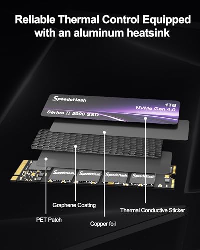 Speederlash 1TB NVMe M.2 PCIe4.0 SSD, up to 5000MB/s, Gen4x4 M.2 2280 Internal Solid State Drive Heatsink Included, 3D NAND, Compatible with PS5, Laptop, PC Desktops, for Gamers and Creators