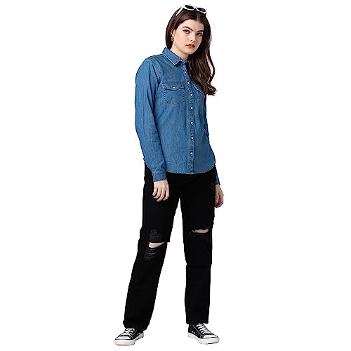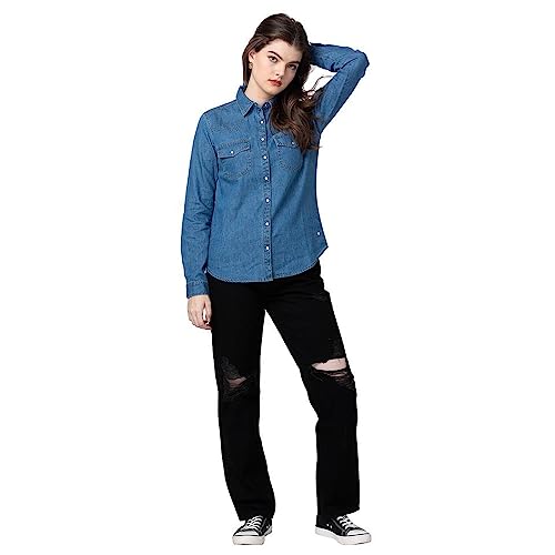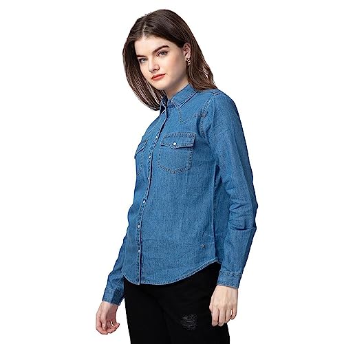Spykar Denim Cotton Collar Neck Women's Shirt