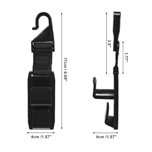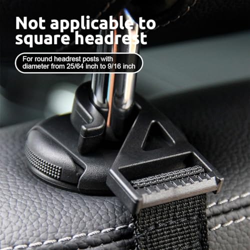 VERSATILE HANGING SOLUTION: Enhance your car's organization with this versatile headrest hook, ideal for hanging various items like bags, backpacks, and water bottles. The curved car back seat hook and round slot design make it adaptable for multiple uses. Keep your essentials within easy reach and maintain a tidy car interior while on the move. Ideal for anyone who values a clutter-free car environment, especially busy commuters and families. Don't miss these car seat accessories. DURABLE CONSTRUCTION: Trust our headrest car hooks back seat to securely hold your belongings with its robust construction. Made from premium plastic and reinforced with nylon webbing, our car head rest hook supports heavy loads up to 17.6lbs. This car organiser durable design ensures long-lasting performance, providing you peace of mind that your items are safely stored even on bumpy roads. Perfect for enduring the wear and tear of daily use. EASY INSTALLATION AND REMOVAL: Enjoy hassle-free usage with these easy-to-install car headrest hooks. The car hanging set of four can be quickly attached to the headrest rods, instantly improving your vehicle's storage capacity. Conveniently remove them as needed, making these hooks adaptable to your ever-changing storage requirements. Simplify your car organization try these hooks for hanging and experience the immediate difference. CONVENIENT STORAGE SOLUTION: Optimize your car's space and reduce clutter with these practical headrest hooks. Perfect for hanging handbags, grocery bags, umbrellas, or coats, these hooks keep your belongings off the floor or seats. Maintain a clean and organized car interior, making long journeys or rides with multiple passengers more comfortable. Say goodbye to messy car interiors get your car hook for hanging bag set today. TRAVEL ESSENTIALS ORGANIZER: Keep your travel essentials within arm's reach with these headrest hooks, ideal for phones, sunglasses, or small bags. They provide a secure place for frequently needed items, preventing them from rolling around or getting misplaced while driving. Perfect for anyone who wants to keep their car organized and their important items at their fingertips. Revolutionize your travel experience add these car decoration items-car hanging hooks to your cart now.