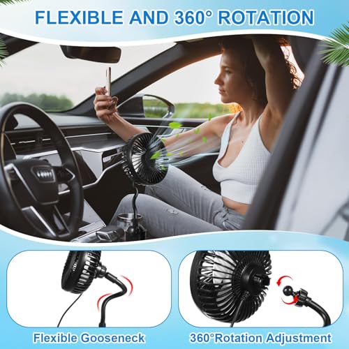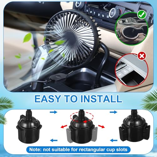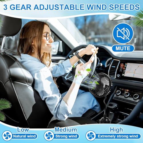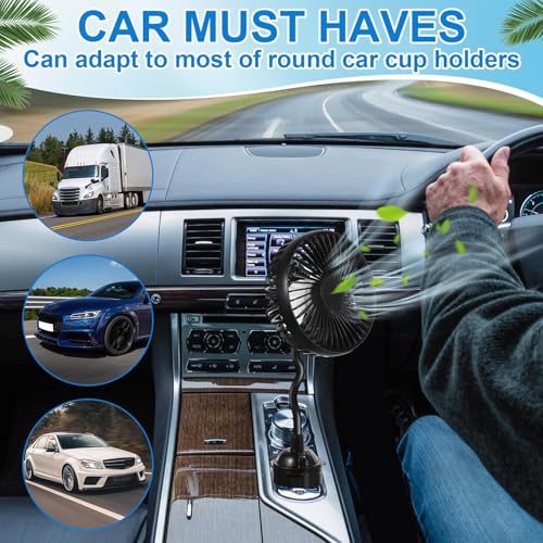 CAR FAN FOR CUP HOLDER: This car fan is innovatively designed to fit securely into most standard car cup holders, ensuring optimal placement without occupying extra dashboard or vent space. The fan for car convenient placement gives you quick access to the fan controls, while keeping your cars interior organized and clutter-free. 3-SPEED CONTROLLED COOLING: Equipped with an easy-to-use controller, this mini fan for car offers three adjustable speed settings. Select low, medium, or high air flow to achieve your desired comfort level during hot days. The usb fan for car smooth-speed adjustment lets you customize cooling quickly . PLUG AND GO CONVENIENCE: Enjoy effortless operation with this plug-and-go car usb fan no tools or complicated setup required. Just insert the fan into your cup holder, plug it into your cars cigarette lighter, and enjoy instant airflow. Its a simple, effective upgrade to keep your vehicle cool and comfortable. FLEXIBLE GOOSENECK ADJUSTMENT: Featuring a sturdy, flexible goose neck, this car fan high speed can be easily bent and positioned to direct airflow exactly where you need it. The car mini fan adjustable neck ensures optimal air circulation for driver or passenger, enhancing comfort without interfering with driving or dashboard controls. 5V CAR CIGARETTE LIGHTER POWERED CAR COOLING FAN: This cooling fan is compatible with 5V car power outlets, making this vehicle fan suitable for cars, SUVs, and other vehicles. Simply plug it into your cars cigarette lighter socket for immediate cooling no need for batteries or complex installations.
