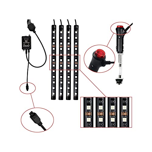 Sulfar 12V RGB LED Strip Light Atmosphere Decoration Lamp Car Interior Light with Remote Control, Black