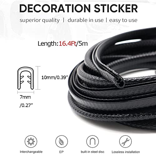SV Car Door Edge Guards 16Ft (5M) U Shape Edge Trim Rubber Seal Protector Rubber Clips Fit Car Door Seal Strip Edge Guard Universal Fit Rubber (Black)