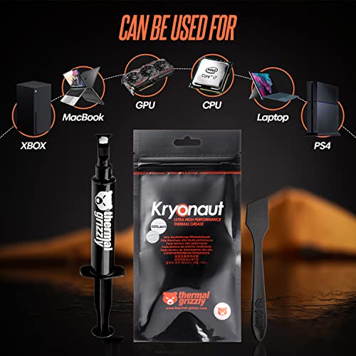 Thermal Grizzly Kryonaut The High Performance Thermal Paste for Cooling All Processors, Graphics Cards and Heat Sinks in Computers and Consoles Combo Extra Spatula, Cleaning Pads + Cloth (11.1 Gram)