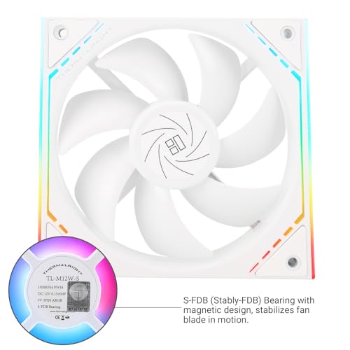 ?High Performance Cooling Fan?Automatic speed control of the motherboard through the 4PIN PWM fan cable interface, which can determine the speed according to the temperature of the motherboard. The cpu fan is equipped with a 4-pin power connector and a cable with a serial ARGB lighting connector, which plugs directly into the motherboard. ?Quality Bearings?The carefully developed quality S-FDB bearings solve the problem of pc cooling fan blade shaking in lifting mode, keeping fan noise to a minimum while providing maximum cooling performance when needed and extending the life of the PC pwm fan. ?Silent CPU Fan Size? Model: TL-M12W-S; Size: 120*120*25mm; Fan Speed: 1500RPM±10%; Noise?23.2dBA;Connector: 4pin pwm; Lighting Interface: 3pin ARGB; Current: 0.15A; Air Pressure: 1.31mm H2O, Air Flow: 47.6CFM; Higher air flow for improved cooling performance,and keep the noise at a low level. ?High Performance Cooling Fan? Automatic speed control of the motherboard through the 4PIN PWM fan cable interface, which can determine the speed according to the temperature of the motherboard. The cpu fan is equipped with a 4-pin power connector and a cable with a serial ARGB lighting connector, which plugs directly into the motherboard. ?Perfect Match?The cpu fan can be used not only as a case fan, but also suitable for use with a cpu cooler to create a cooling effect together, which can take away the dry heat from the case and the high temperature generated by the CPU in operation, allowing for maximum cooling; Ideal for cases, cpu water cooler and CPU air coolers.