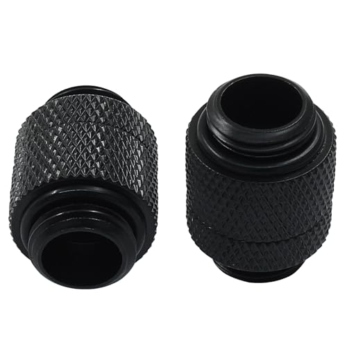 What Will You Get?You will receive 2pcs G1/4" black male to male extender fittings. Product Size: Thread Size: G1/4", Overall Length: 24.5mm/0.96" Mid Knurled Hand Twisted Section: 14.7mm/0.58", Port Diameter: 12.7mm/0.5". Features: can be rotated 360 degrees. Unique Design:G1/4 “ Male to Male Extender Fitting is designed with embedded O-ring and sealing rubber ring for quick connection, enhanced stability, ensuring sealing performance and leak-free operation. High-Quality Materials: Male to Male Extender Fitting is made of high-quality brass with exquisite craftsmanship and electroplated surface treatment for better heat dissipation and durability. Wide Range Of Uses: The main features of the Male to Male Extender Fitting with O-Ring are its extension capability and 360 degree rotation. It can be widely used in various computer CPU water cooling systems. The adapter provides a reliable, versatile compression fitting solution for computer water cooling systems, ensuring efficient, leak-free performance.