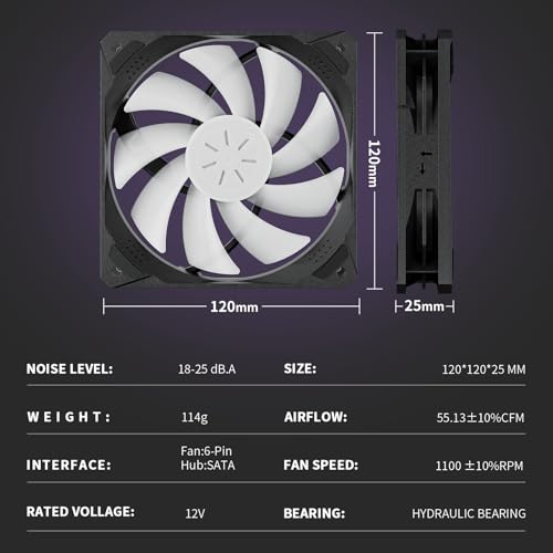 High-Performance Cooling: Our nine-blade fan reaches a max speed of 1800RPM and attaches directly to the motherboard via the 4pin interface providing optimal cooling for your case. PWM Control:The PWM function enables the motherboard to precisely control the fan speed as needed. This ensures adequate cooling while minimizing noise levels. 5V ARGB SYNC: Advanced ARGB lighting system with 5V 3PIN ARGB motherboard synchronization support. Switch between multiple RGB modes to add color to your computer case.Caution: Do not connect to a 4pin 12V RGB_HEADER. This will damage the LED strip. With upHere Fan Hub and remote: You can instantly adjust LED back-light effects, colors, brightness, and fan speed. Note: Fan speed is only controlled by remote. Hydraulic Bearing Design: Our high-quality bearings ensure stable fan rotation, minimal noise output, and an extended lifespan of up to 40,000 hours per fan.