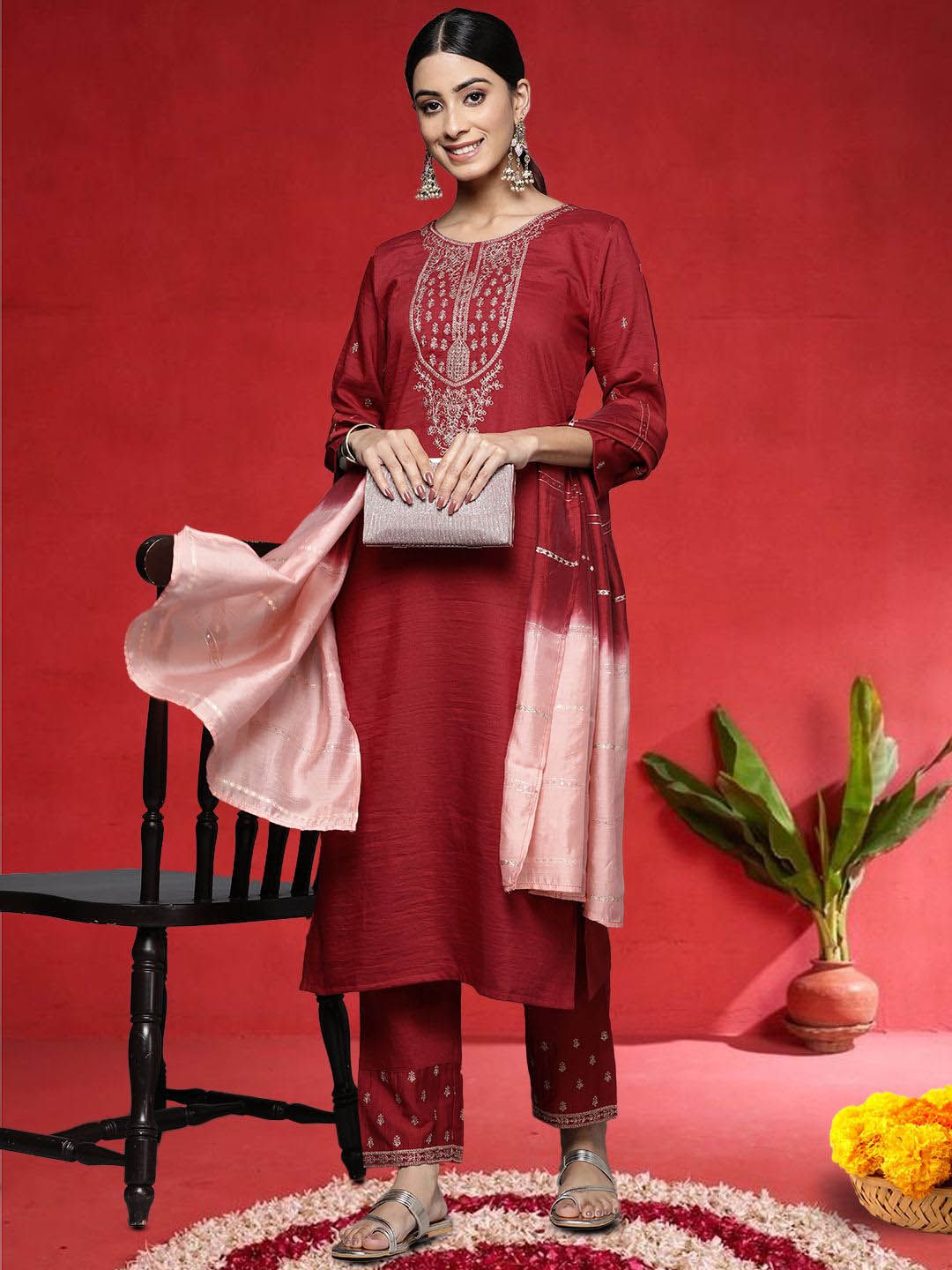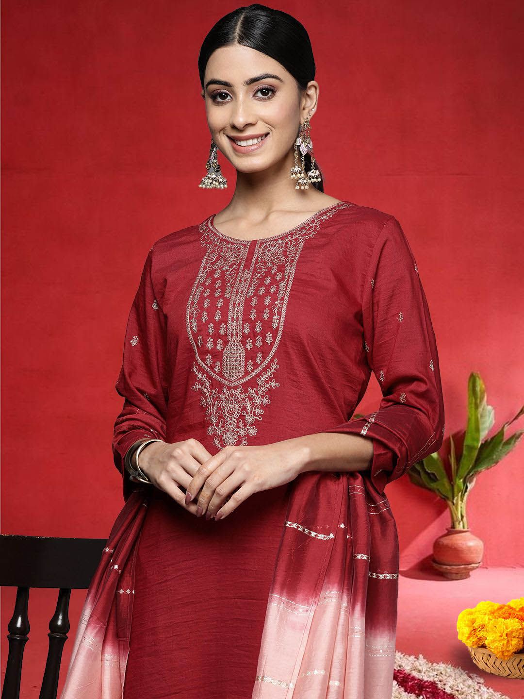 Varanga Women Ethnic Motifs Embroidered Regular Kurta with Trousers & Dupatta