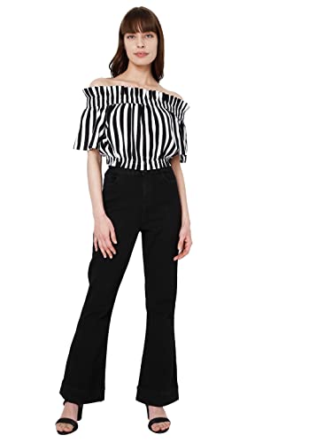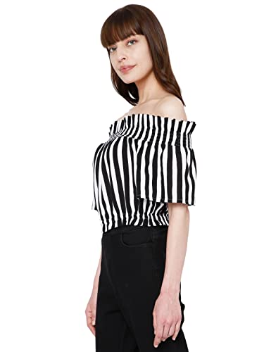 VERO MODA Stripes Viscose Blended Off Shoulder Womens Top (S22VM10273658-P)