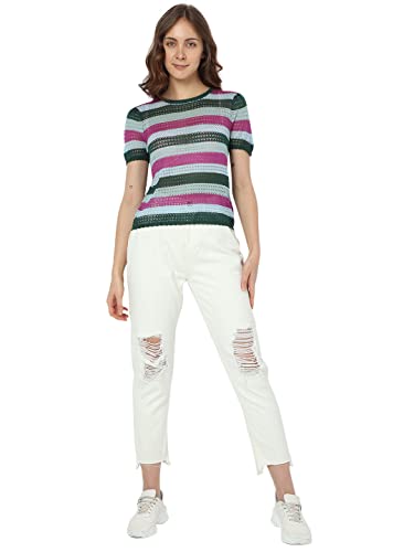 VERO MODA Textured Viscose Blend Round Neck Women's Top