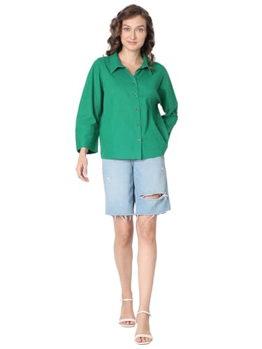 VERO MODA Women Cotton Regular Spread Collar Long Sleeves Opaque Casual Shirt