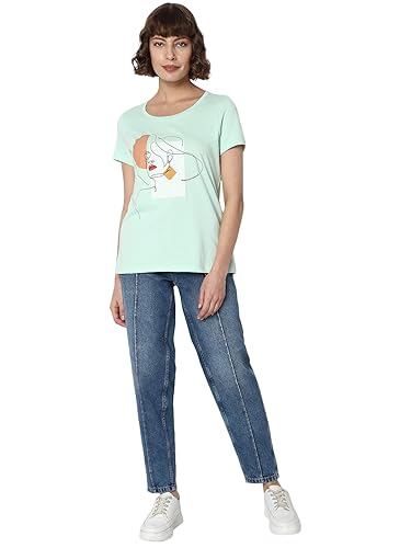VERO MODA Women's Cotton Graphic Regular Fit T-Shirt