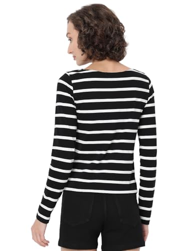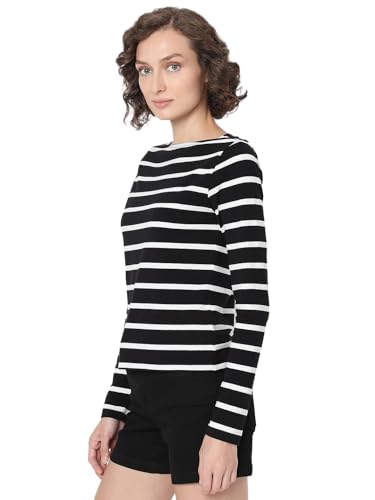 VERO MODA Women's Cotton Striped Regular Fit Full Sleeves T-Shirt