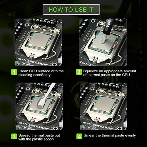 Excellent Performance: The compound is composed of carbon micro-particles which lead to an extremely high thermal conductivity. It guarantees that heat generated from the CPU or GPU is dissipated quickly and efficiently. Thermal Compound: It guarantees exceptional heat dissipation from the components and supports the stability needed to push your system to its limit. Safe Application: Unlike silver and copper compound, it is metal-free and non-conductive, it can eliminate any risk of short circuit, and ensure that contact with any electrical pins would not result in damage of any sort. Easy to Apply: With an ideal consistency, It is very easy to use, even for beginners. Long Life: It's high-stability liquid compound lasts for years with no drying, cracking or change in consistency.