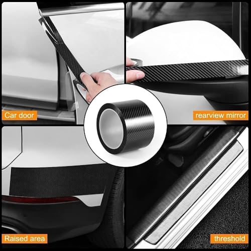 [High quality materials]: The Car Door Edge Guard is made of carbon fiber, which is anti-collision, wear-resistant, heat-resistant, and can be used to cover any existing scratches, paint damage and decorative protection. It can be used for a long time. [Multi function]: Car Door Edge Entry Guards can be used for car threshold strip, door side, door interior, trunk threshold, bumper, wheel eyebrow, etc. It can effectively protect the places where the car is easy to scratch. It is a multi-purpose protection. [Easy to clean]: Our door trims, Easy to clean with water, can be washed and reused, front and rear bumper anti-collision protection, threshold wear pedal protection function. [Easy to install and remove]: Clean the installation position of the surface, then tear off the tape protective film and paste it. Easy to remove, no residue, and will not damage the painted surface of the vehicle. [Wide Application]: The door protectors for vehicles can be applied to your car's hood, trunk, roof, dashboard, gauges, interior, amplifiers, mirrors, cellphones, laptops, motorcycle parts, metal parts etc.