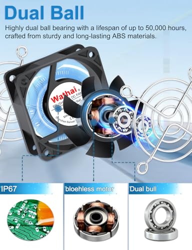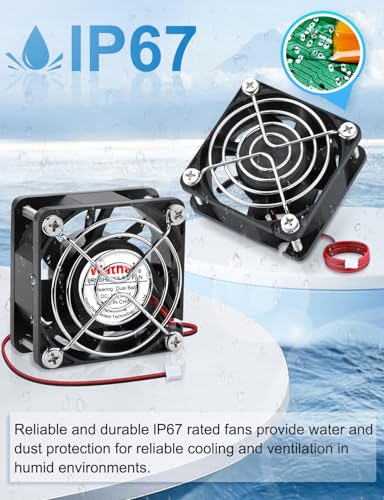 Wathai IP67 60mm x 25mm DC 12V Waterproof Small Fan Dual Ball High Speed DIY Cooling for RV Refrigerator, Computer Case, Generator, Terrarium, Solar Panel Battery Box 2 Pack