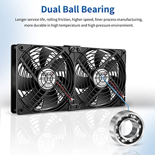 Wderair 2 x 120mm 240mm Computer Fan with AC Plug Server Rack Cooling Fans 110V 120V 220V 240 V Variable Speed Control, for Indoor Plant Growing, Cabinets, Hydroponics Circulation, Window Ventilation