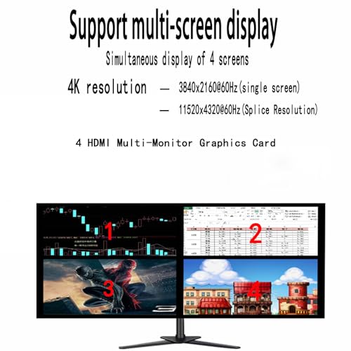 Low-profile design: As a dual-slot, half-height 4-display HDMI graphics card, it is only 8CM high and 4CM inches wide, allowing you to save installation space and build a compact PC system even in an ITX chassis. 4 HDMI Output: This 4hdmi graphics card features 640 Shading Units, 40 Texture Mapping Units and 16 ROPs with 4 native HDMI 2.0 ports. Expand your screen real estate and increase your productivity with a four-way setup system. 4K and 8K displays: With four outputs, this card delivers 4K playback at 60Hz on two screens, or a vibrant 7680×4320 (8K) display with 2×2 stitching, making it ideal for kiosks, digital signage, and presentation walls. PCIe Bus Power: As a dual-slot card, this GT740 card does not require any additional power connectors. It is rated at a maximum power consumption of 60 W and is easy to install. Wide OS Support: Supporting a wide variety of operating systems including Windows 11,Windows 10 32/64 bit,Windows 8.1 - 32/64 bit,Windows 8 - 32/64 bit,Windows 7 - 32/64 bit. If you have any questions during installation, please feel free to contact us. We will get back to you within 24 hours.