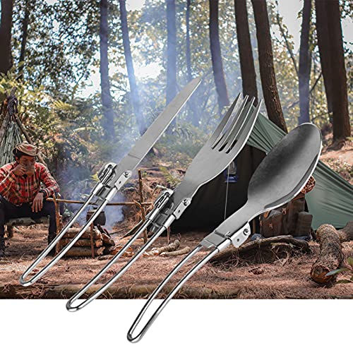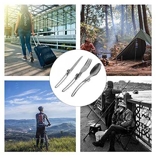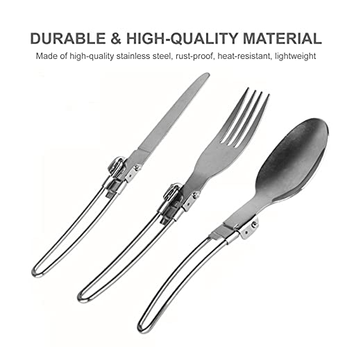 3PCS Folding Fork Spoon Set Foldable lery Set Stainless Steel Cam lery Set for Travel Trekking Hiking with Storage Bags Silver-Layfoo