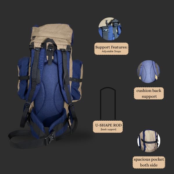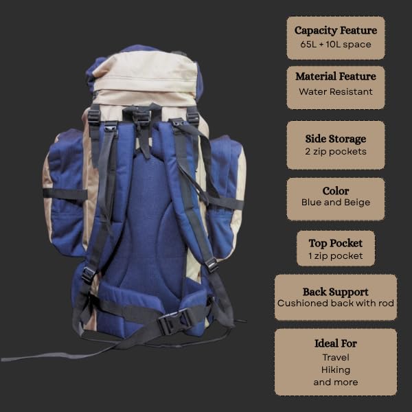 Discover the 65L Hiking Rucksack Backpack with Aluminum Back Support – Water Resistant Trekking & Camping Bag with Cushioned Back, 3 Pockets & Adjustable Straps – Beige & Navy. This product is designed to enhance your experience and meet all your expectations. Built with the best materials, it guarantees exceptional quality and performance. Ideal for all your needs.