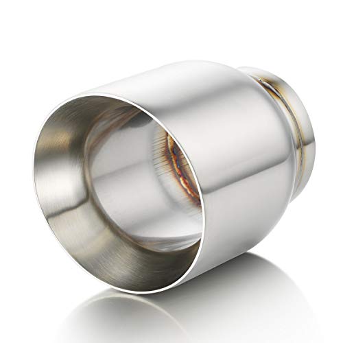 ?Dimension?3 inch inlet diameter, 4 inch outlet diameter, 5 inch overall length, universal fits for 3 inch outside diameter tail pipe. ?Material?Made of stainless steel to avoid corrosion and deformation of the existing tailpipe ?Unique Design?Exquisite workmanship, bright as a mirror after repeated polish processing. ?Appearance?Its exquisite appearance makes it the best choice for decorative vehicles. ?Installation?The method of welding the exhaust tip can ensure long-term use and safety.