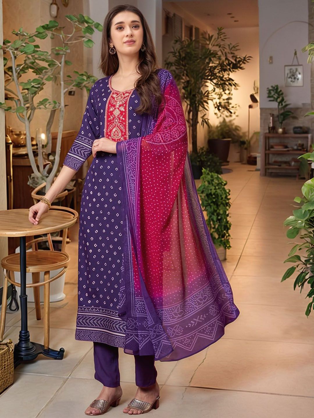 Buy this stylish Aaghnya Bandhani Printed Thread Work Straight Kurta With Trousers & Dupatta at Marincart Nepal. This product offers great quality and value. Perfect for those looking for the latest trends in fashion. Get yours now at unbeatable prices.