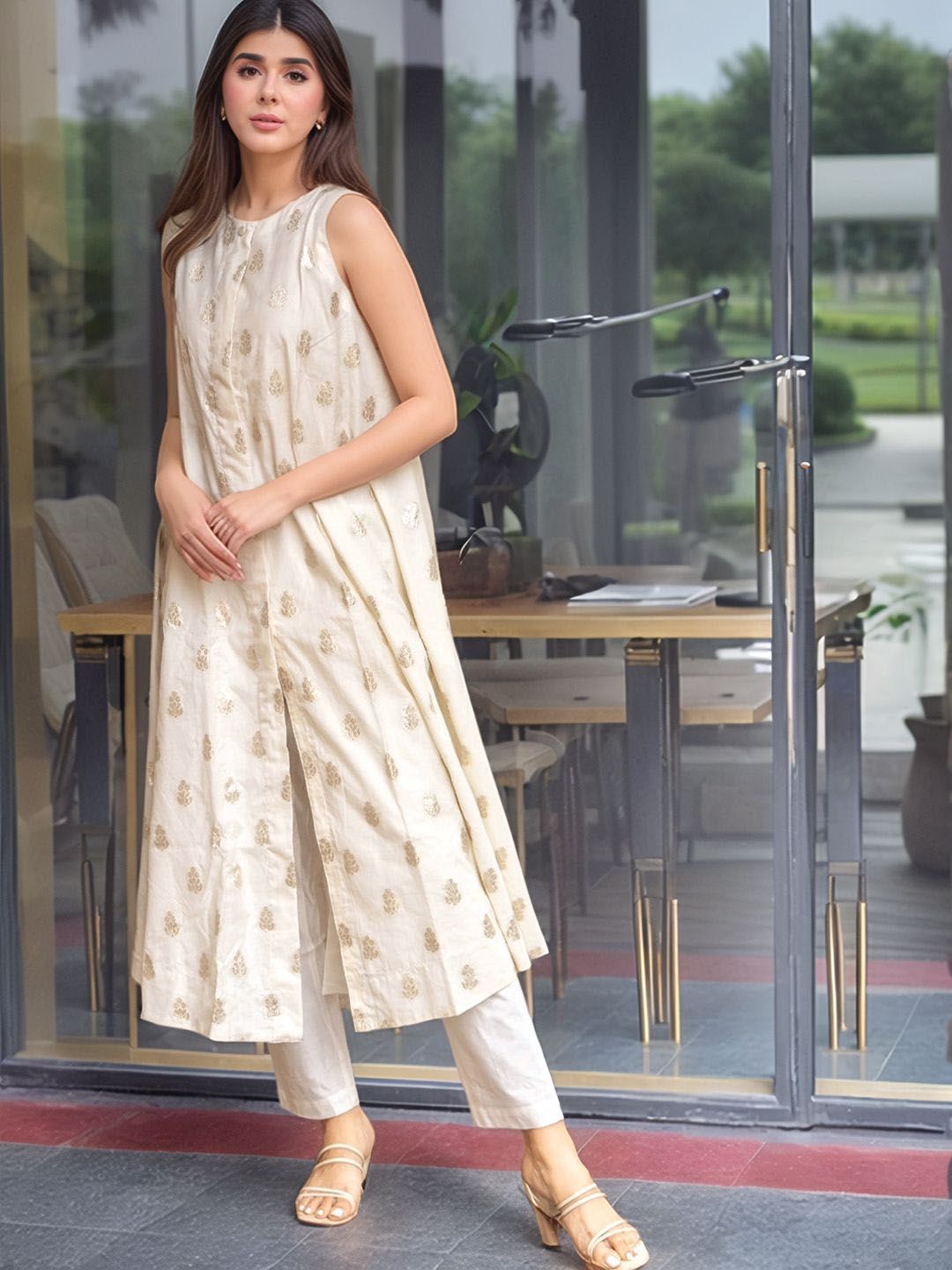 Aaghnya Ethnic Motifs Printed A-Line Kurta With Trousers