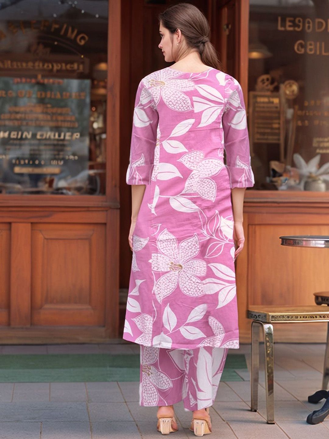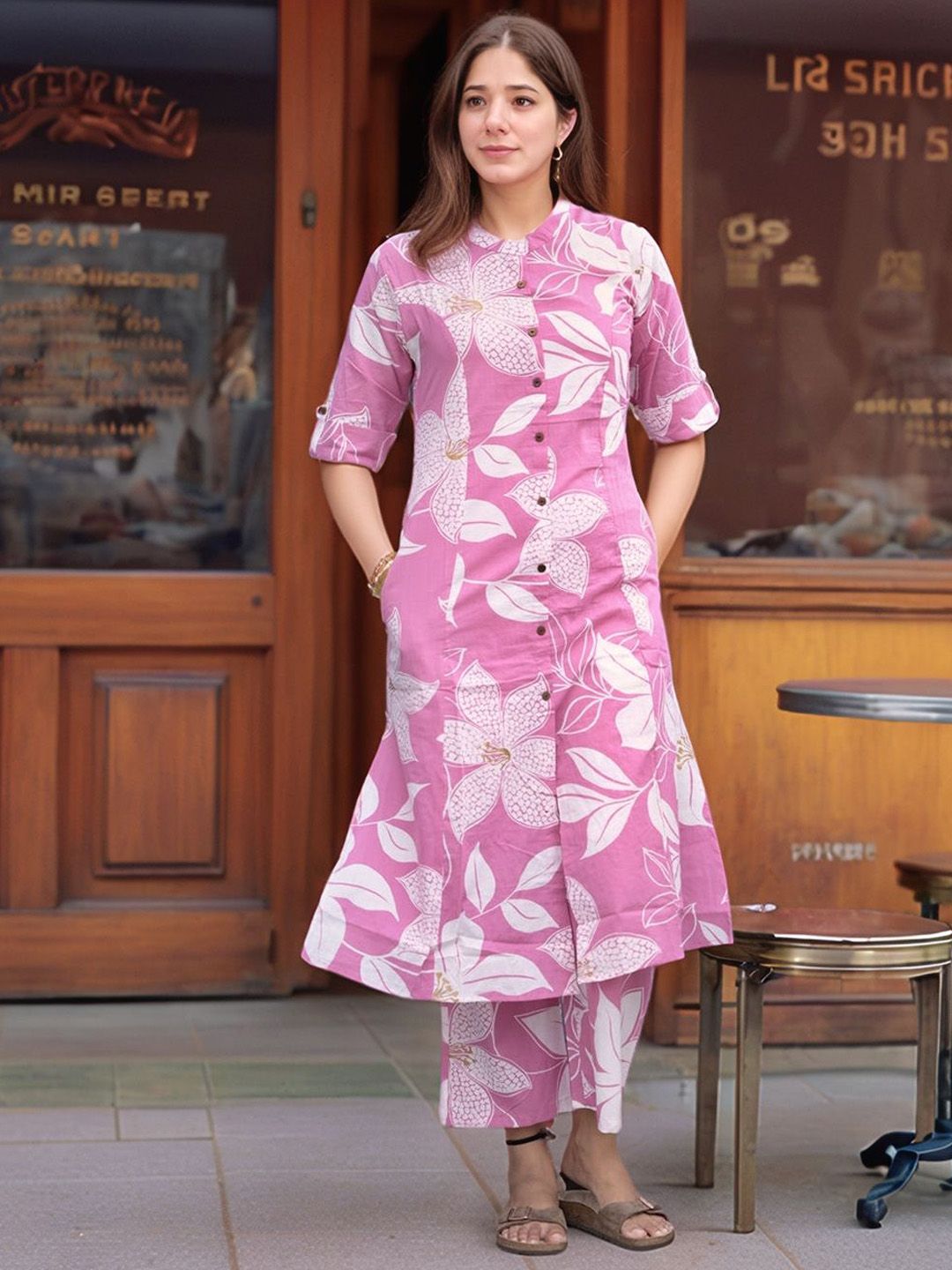 Aaghnya Floral Printed Mandarin Collar A-Line Kurta With Palazzos