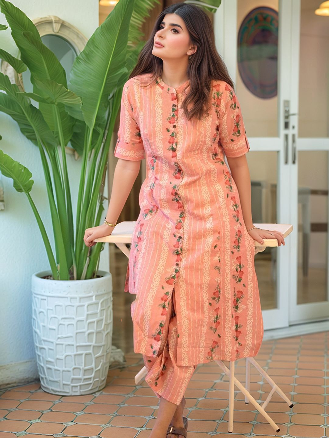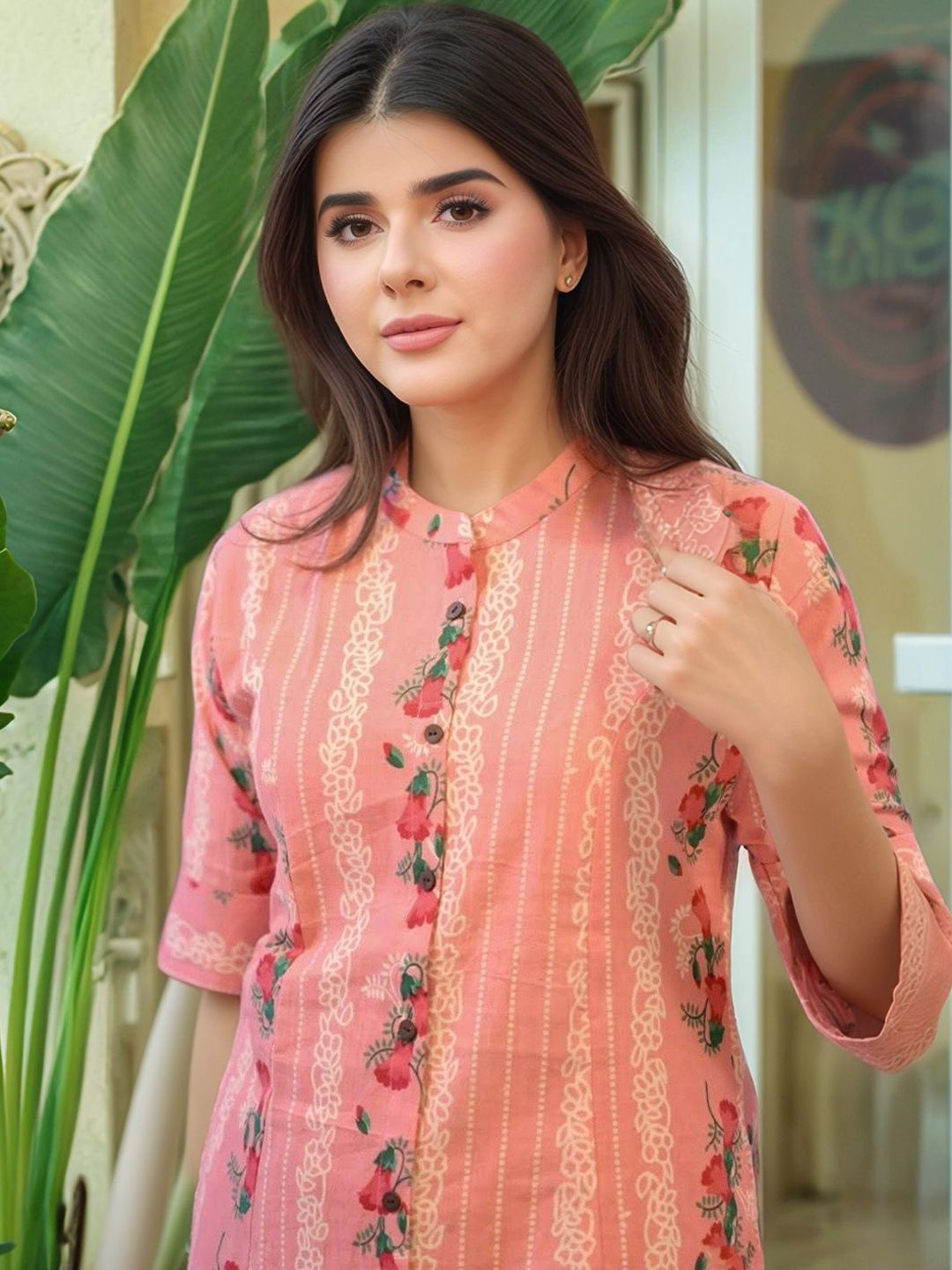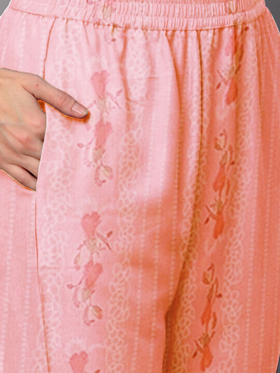 Aaghnya Floral Printed Mandarin Collar A-Line Kurta with Trouser