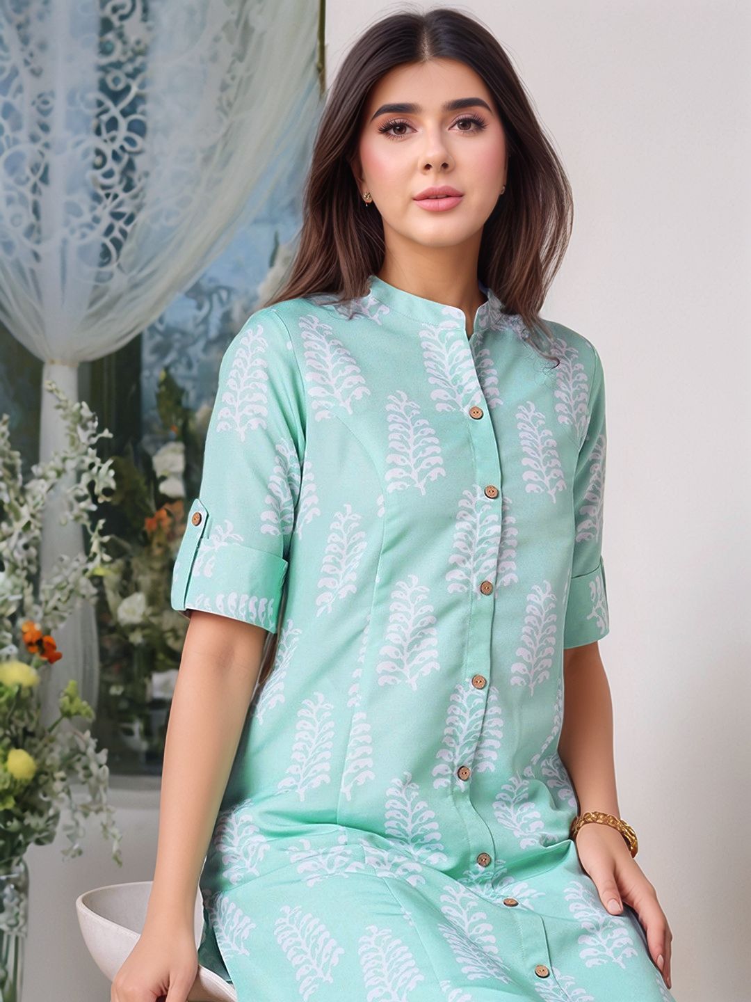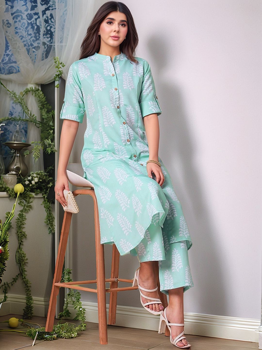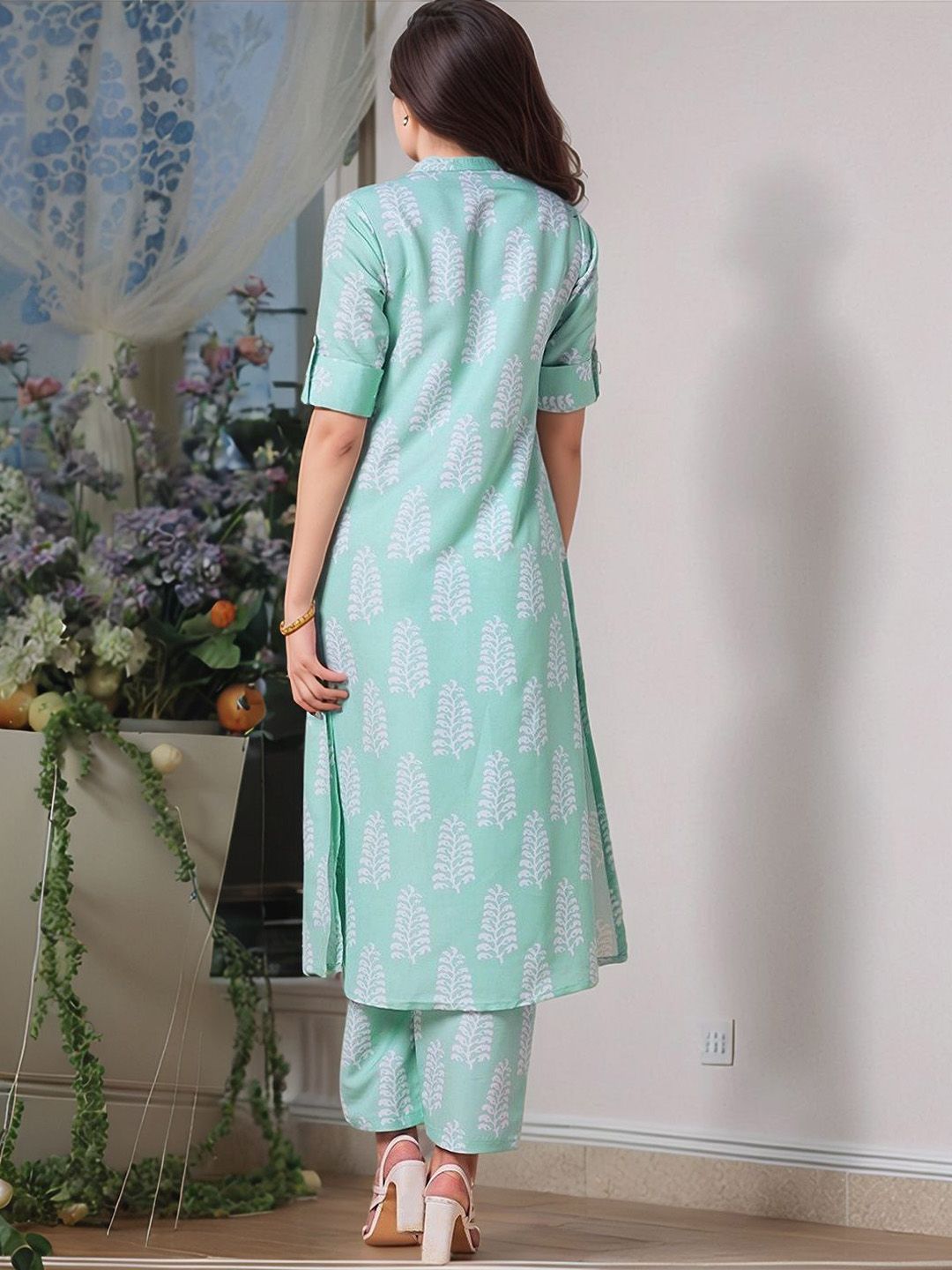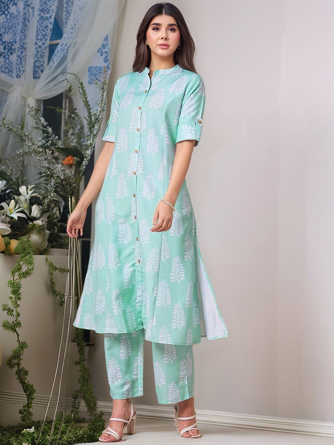 Aaghnya Floral Printed Mandarin Collar Kurta with Palazzo