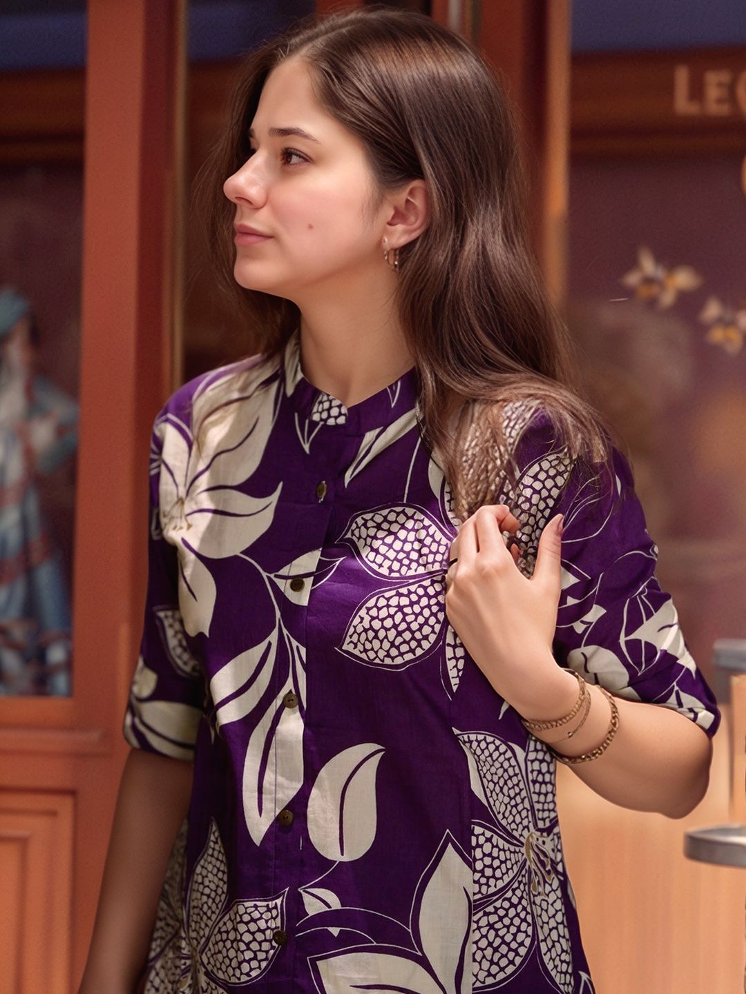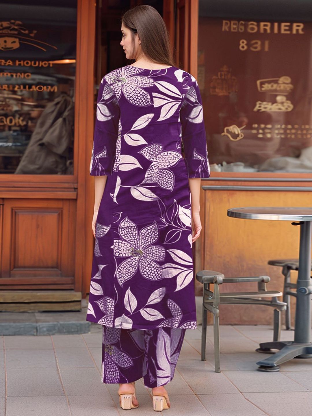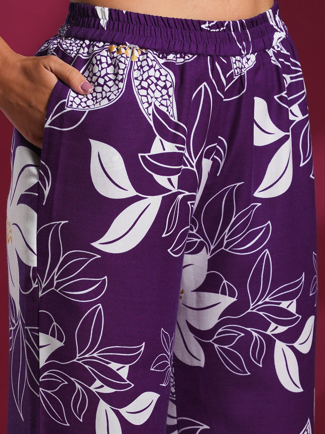 Aaghnya Floral Printed Mandarin Collar Kurta with Palazzos