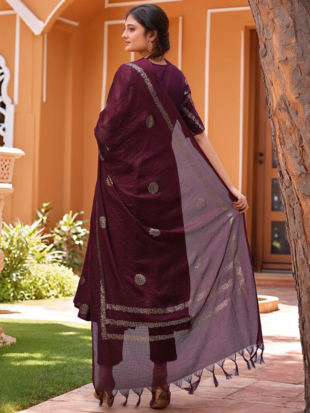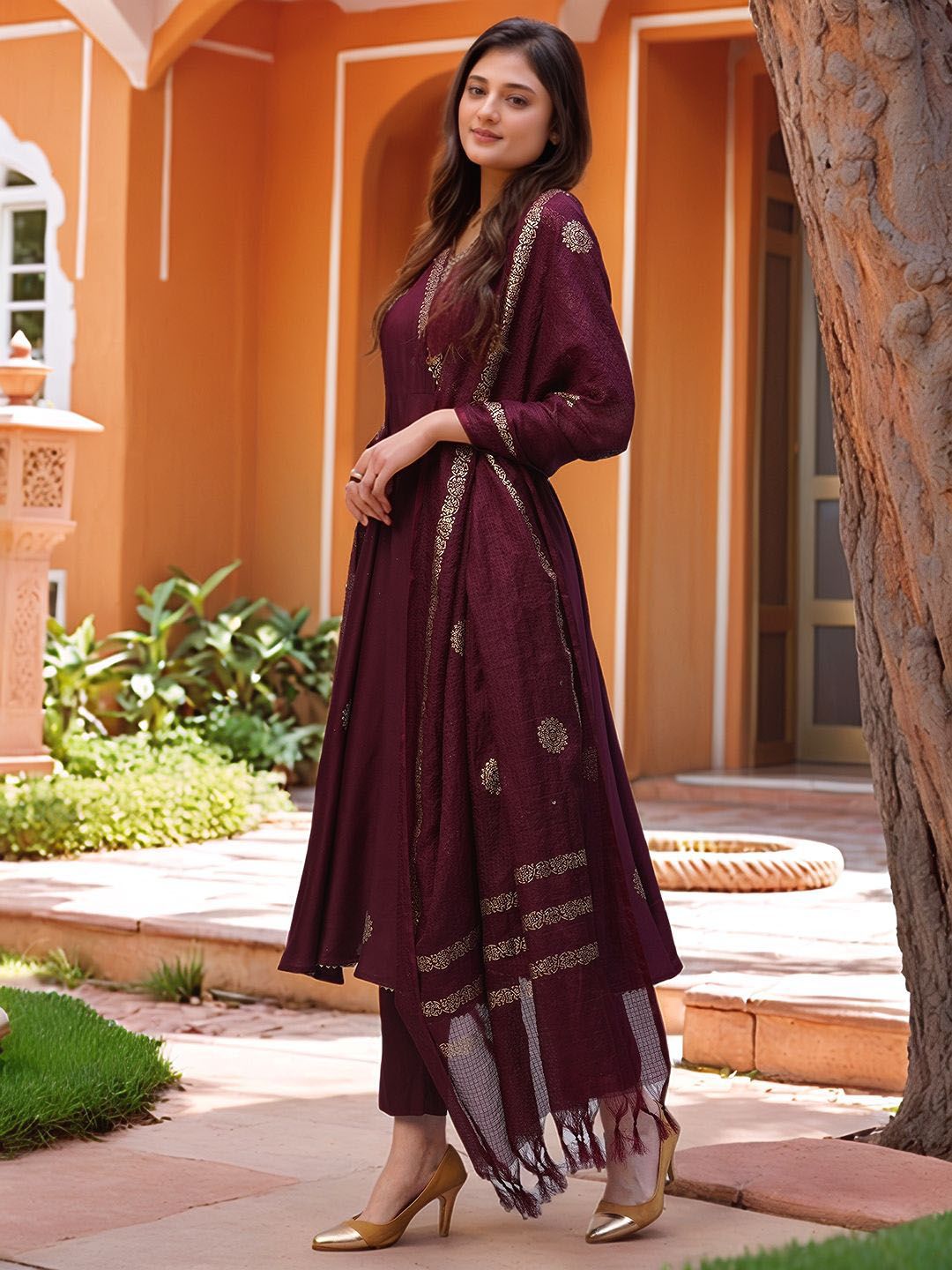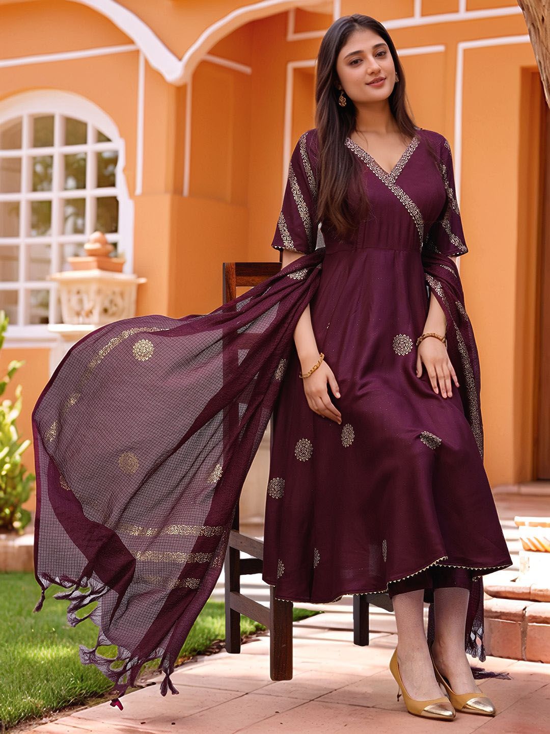 Aaghnya Floral Printed V-Neck Anarkali Kurta With Trousers & Dupatta