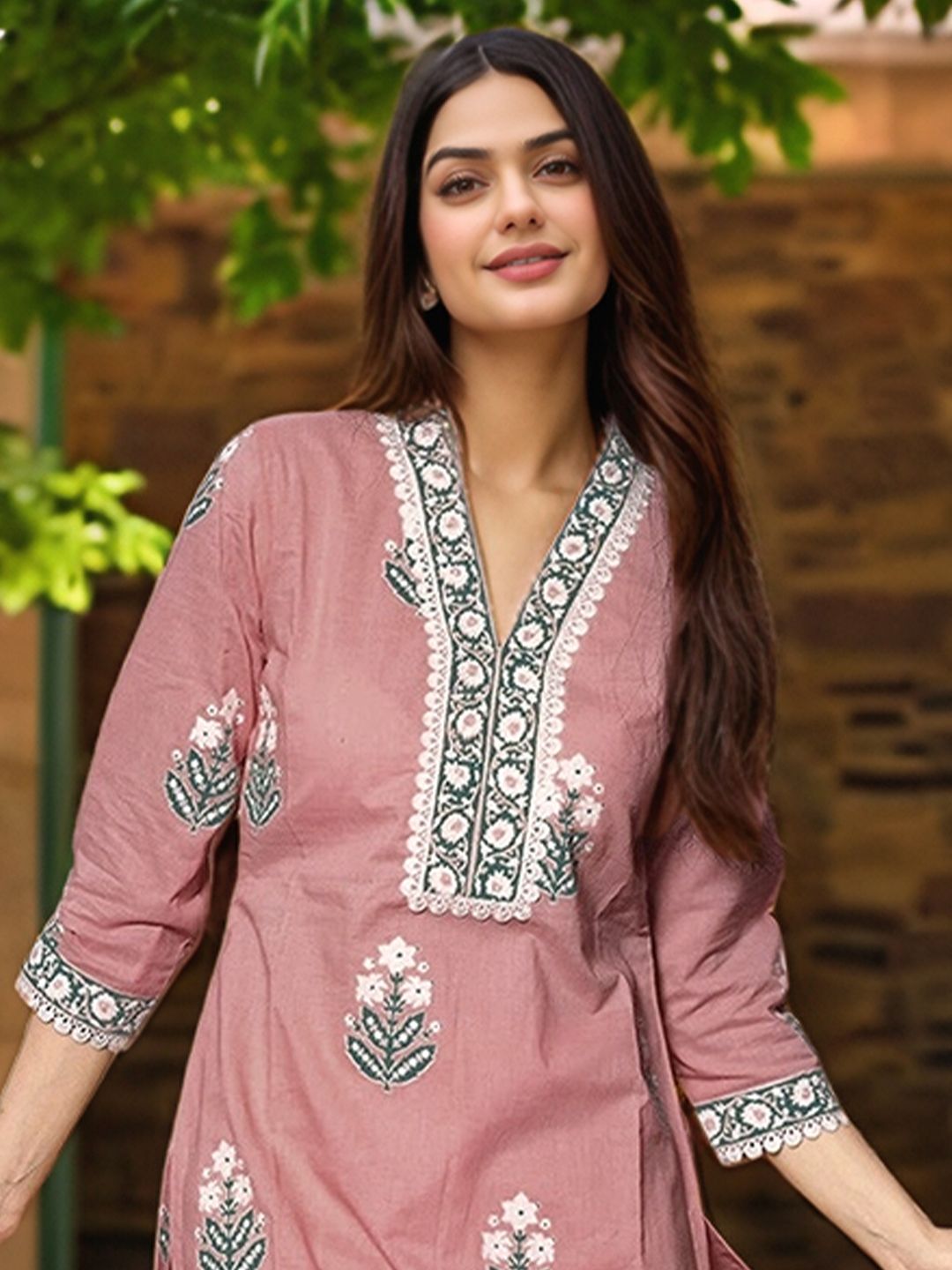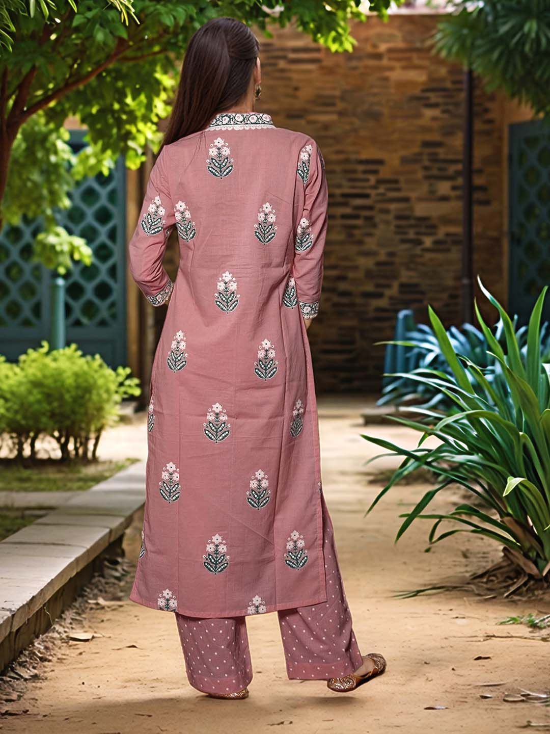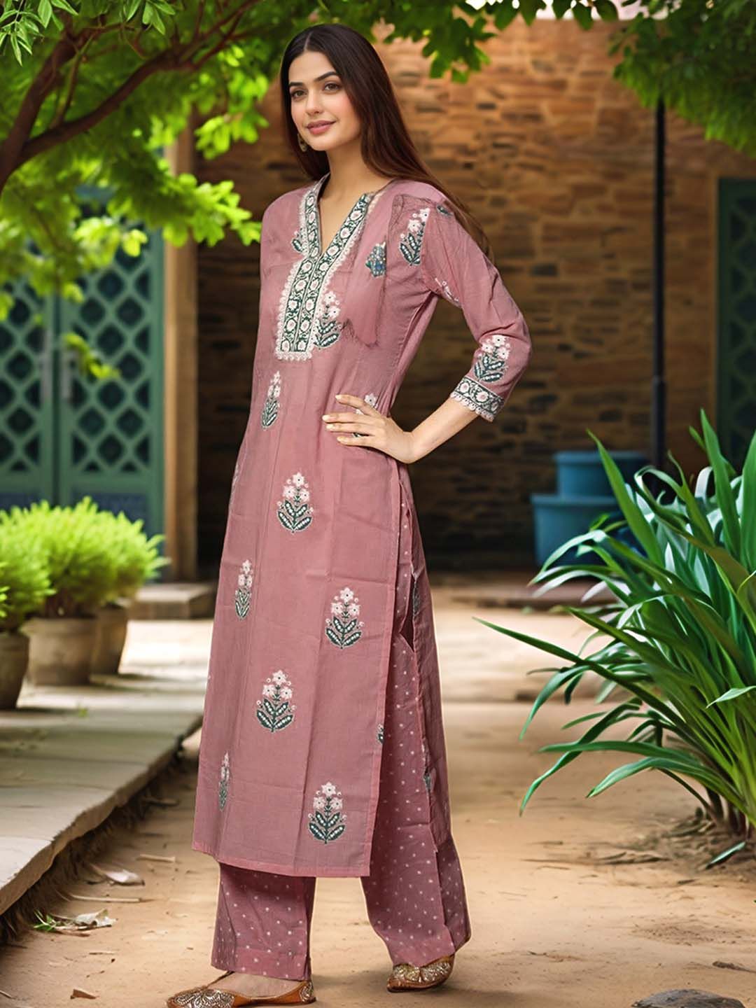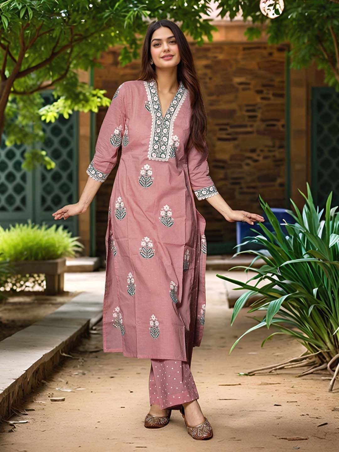 Aaghnya Floral Printed V-Neck Kurta with Palazzos & Dupatta