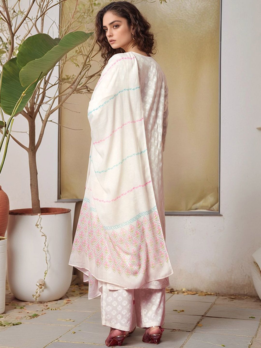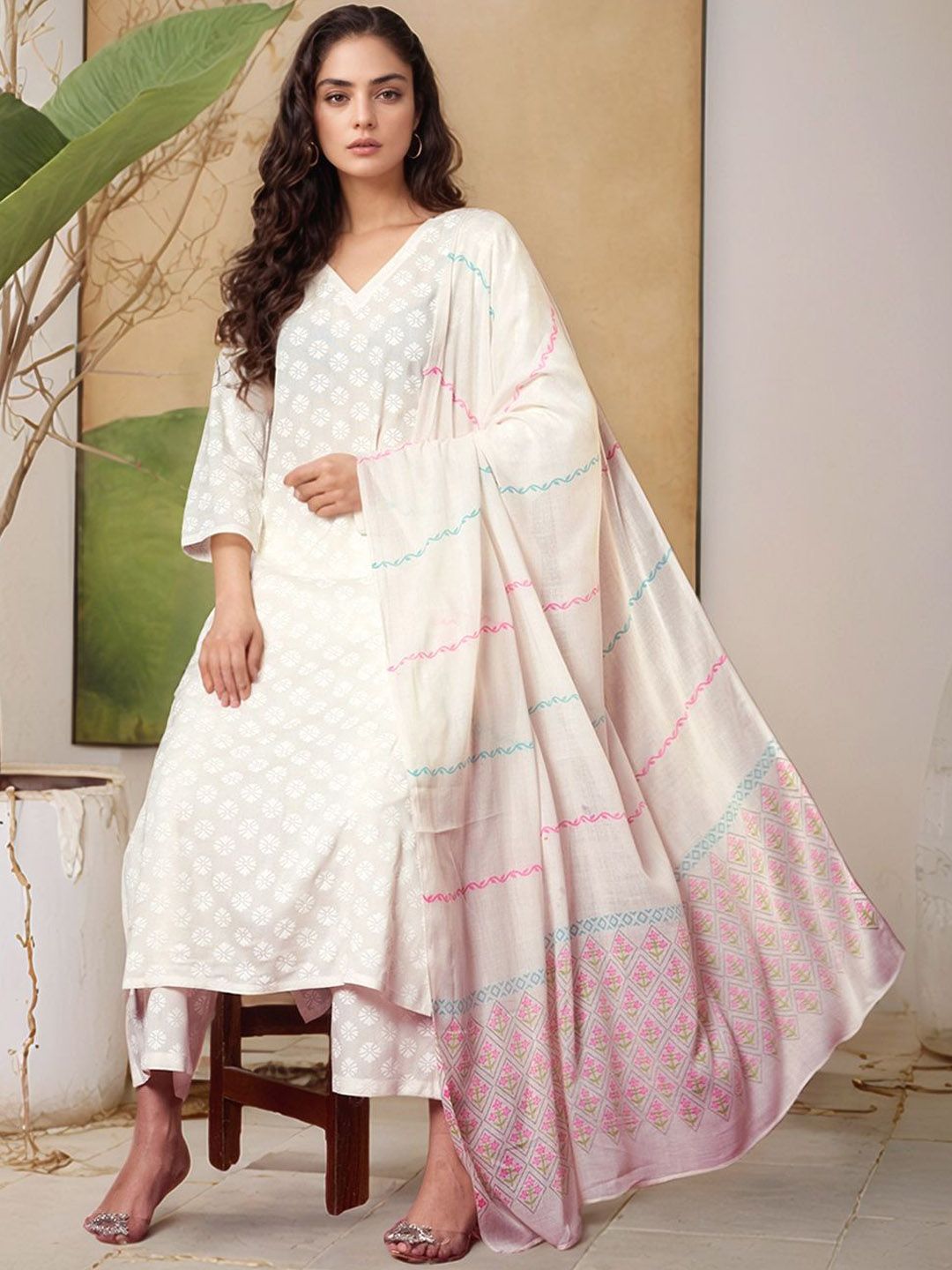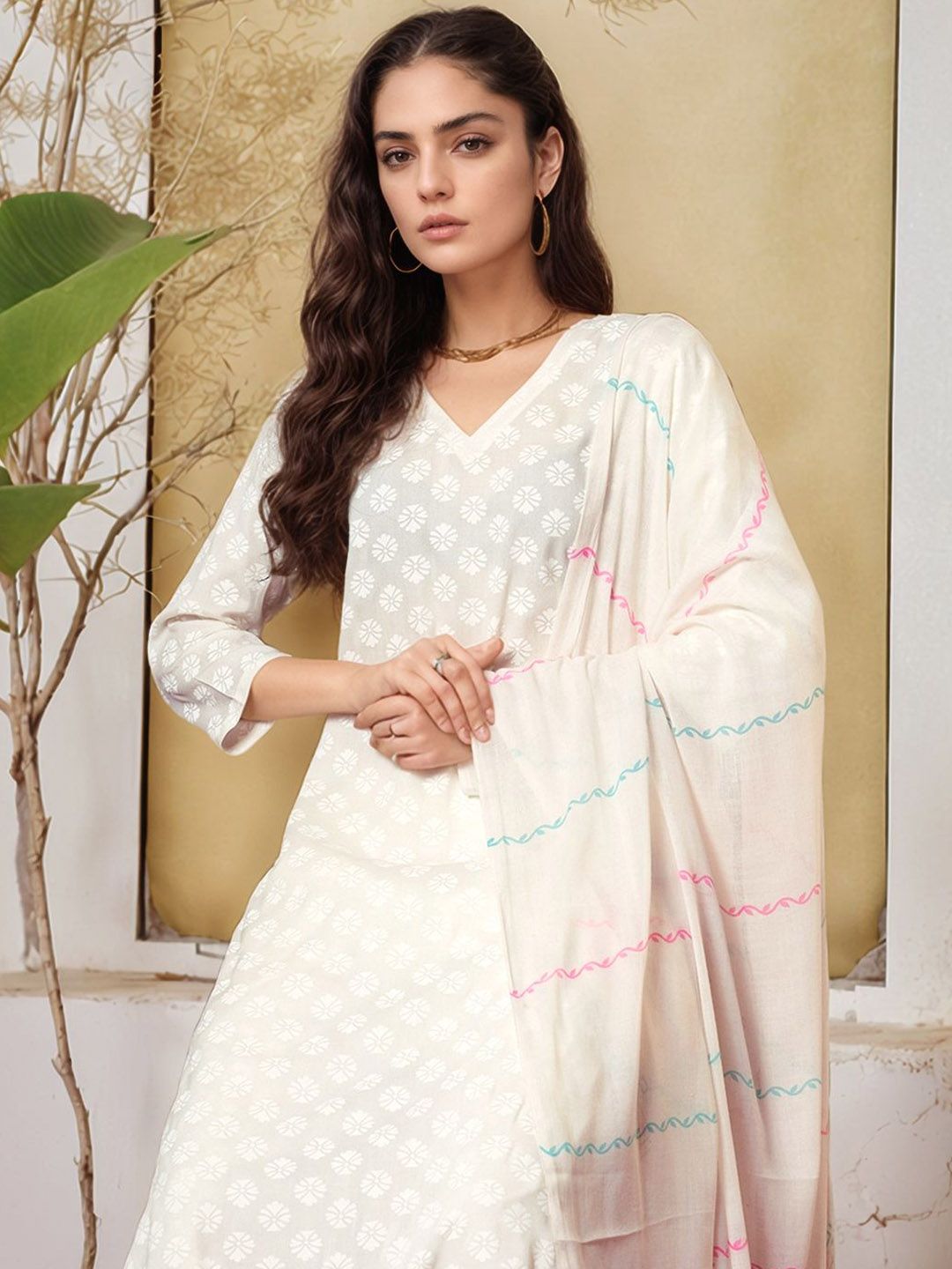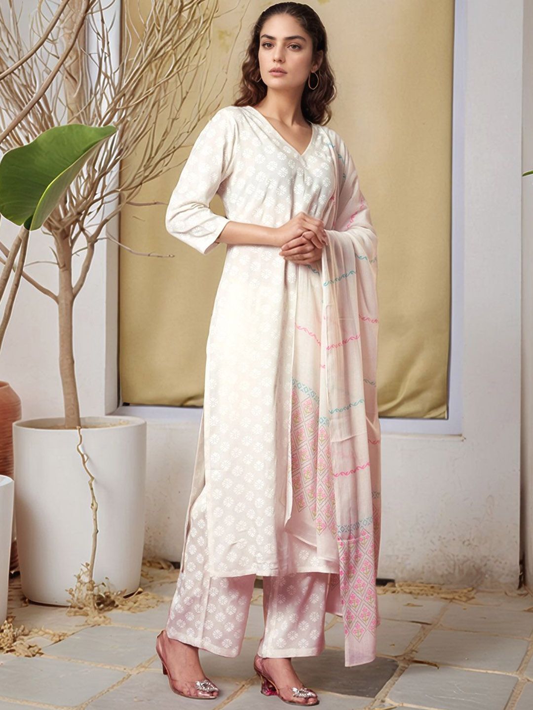 Aaghnya Floral Printed V-Neck Straight Kurta With Palazzos & Dupatta