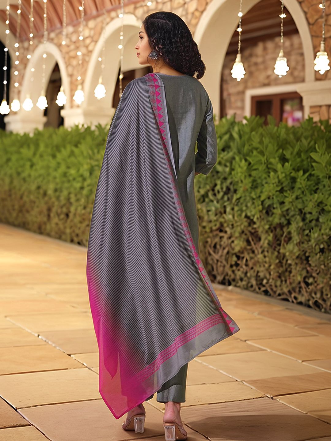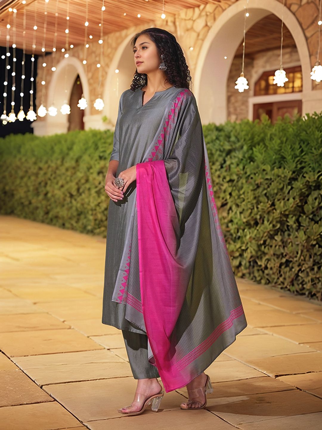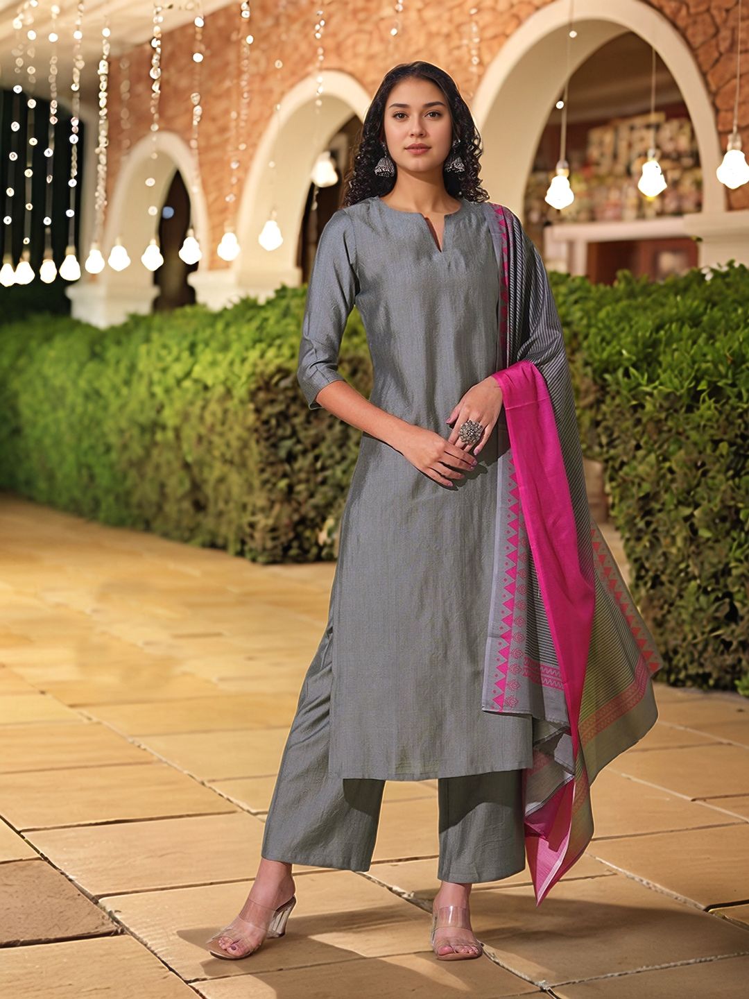 Aaghnya Notch Neck Straight Kurta with Palazzos & Dupatta