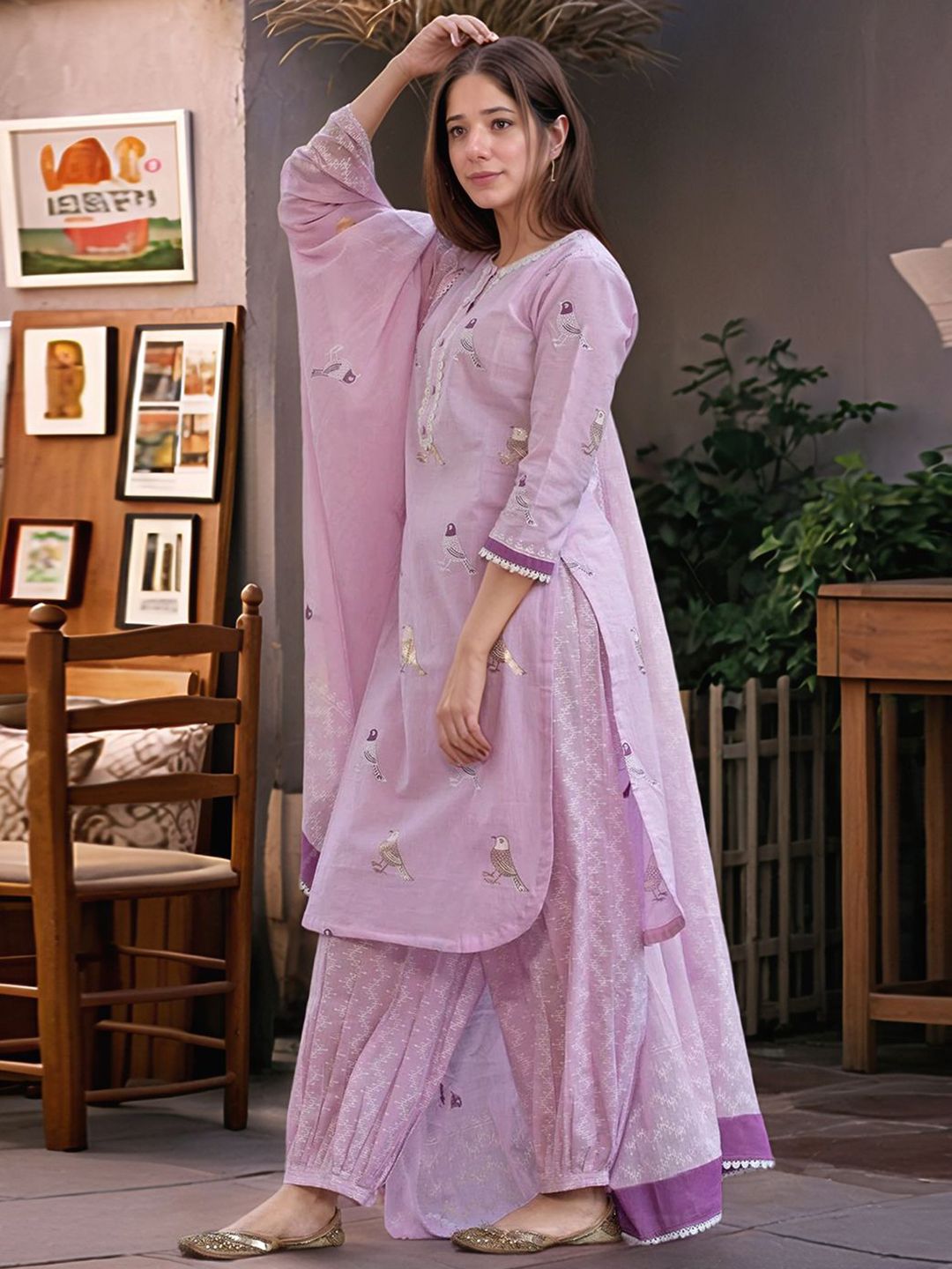 Aaghnya Quirky Printed Round Neck Straight Kurta With Patiala & Dupatta