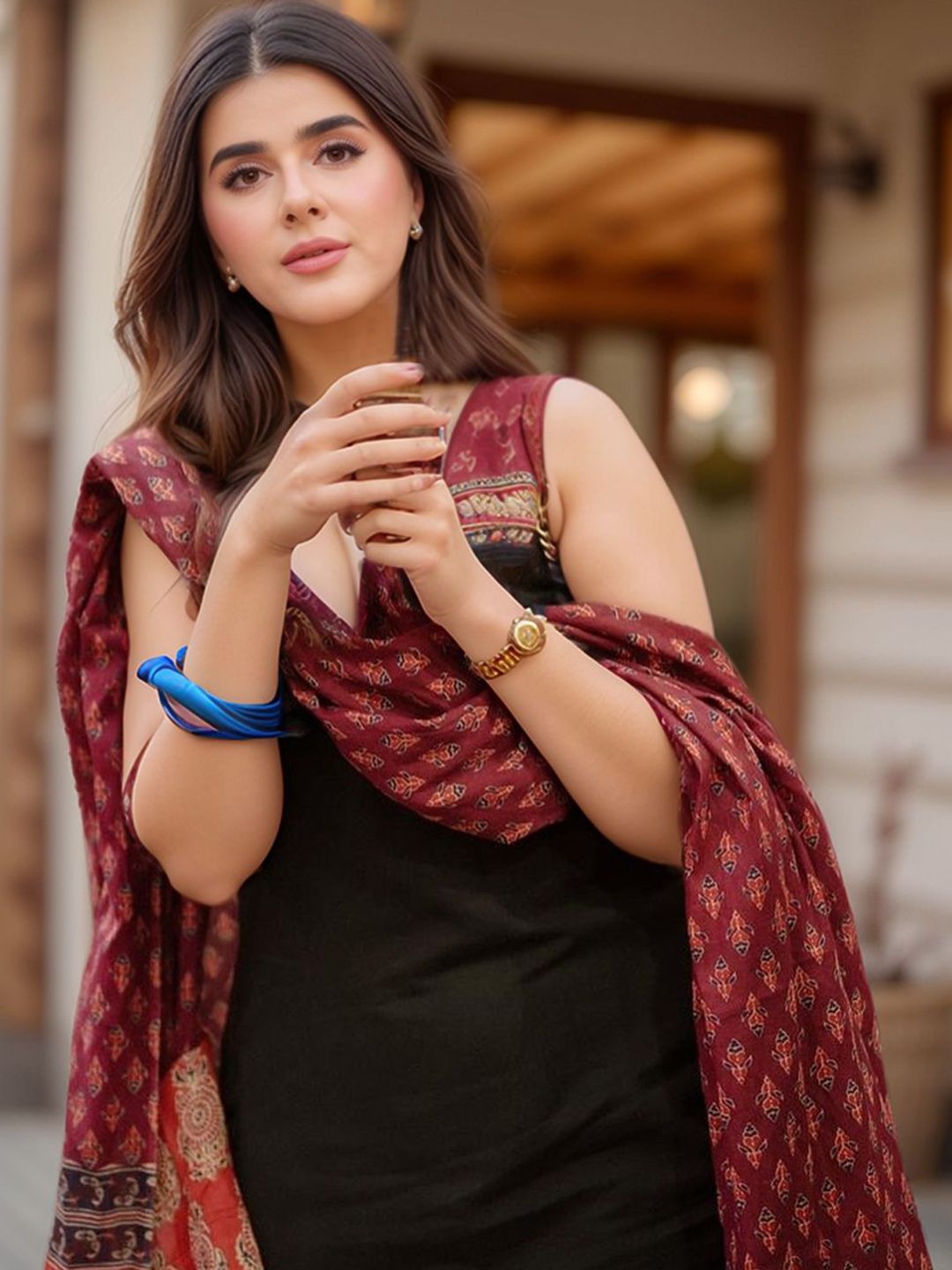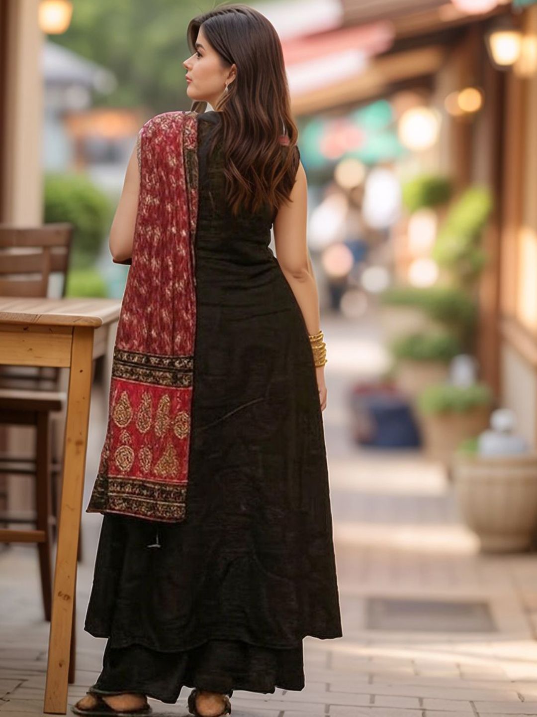 Aaghnya Round Neck A-Line Kurta With Palazzos & Dupatta