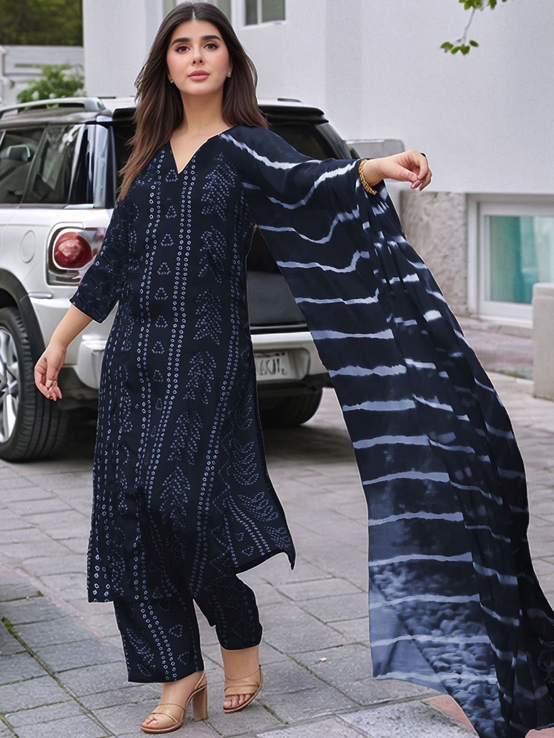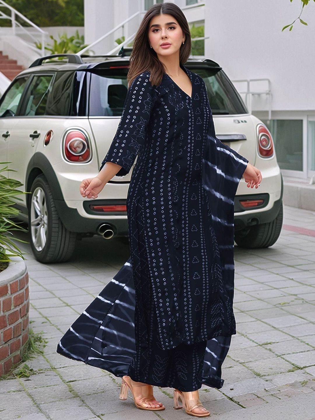 Aaghnya Women Bandhani Printed Regular Kurta with Palazzos & Dupatta
