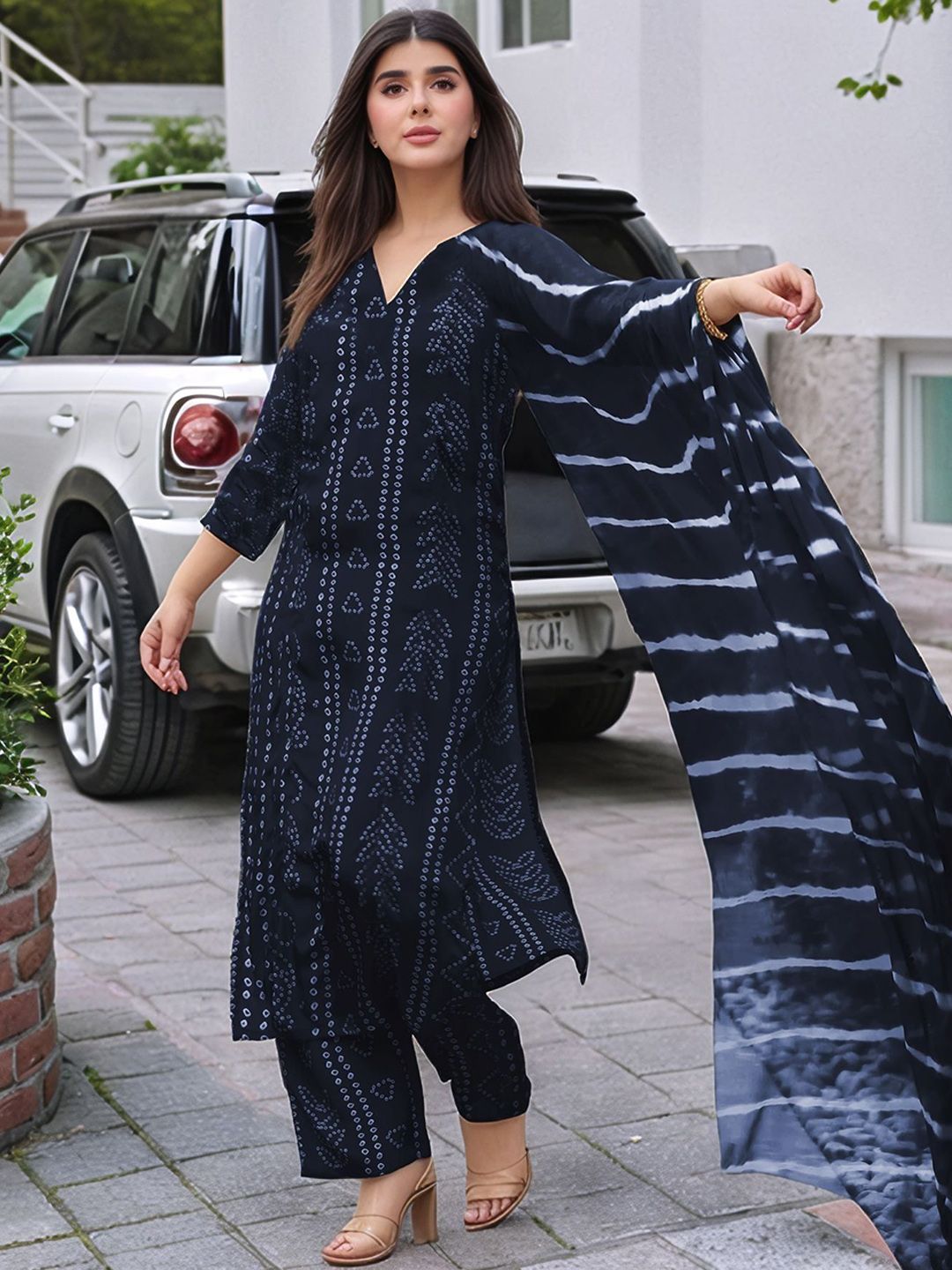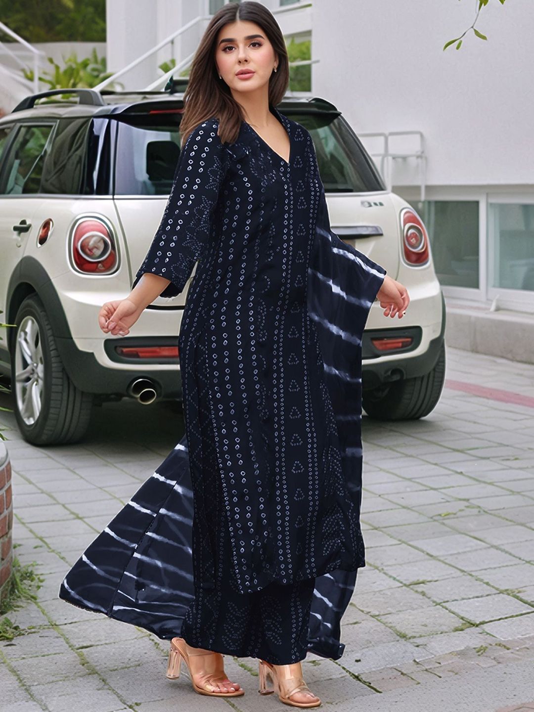 Aaghnya Women Bandhani Printed Regular Kurta with Palazzos & With Dupatta