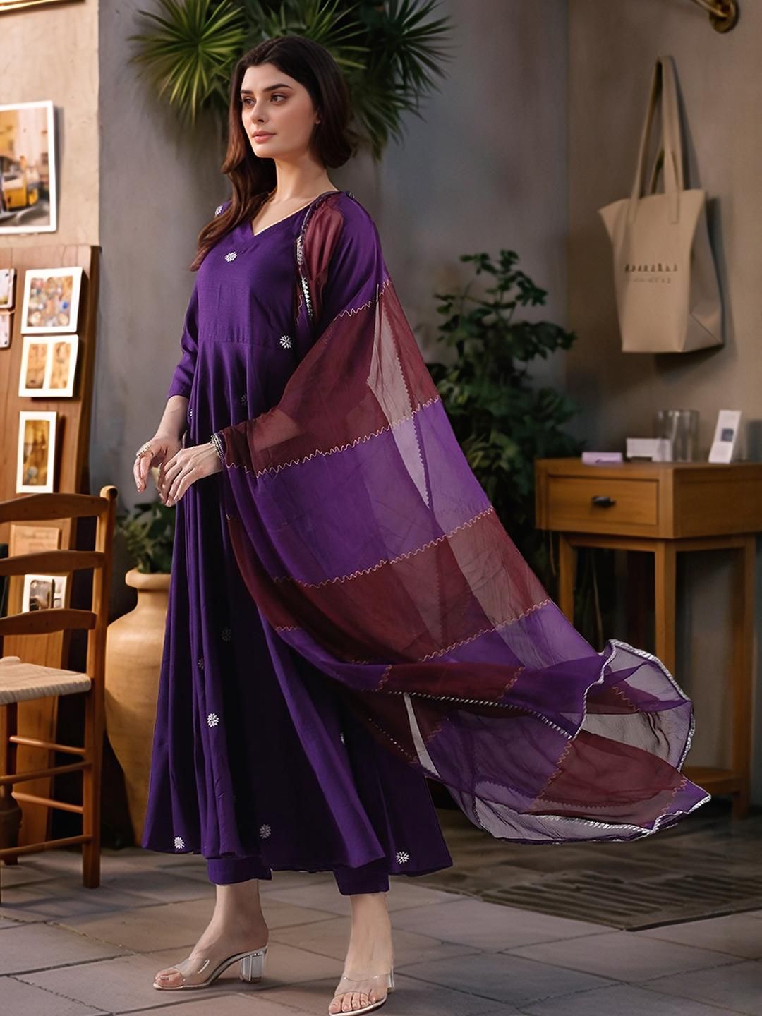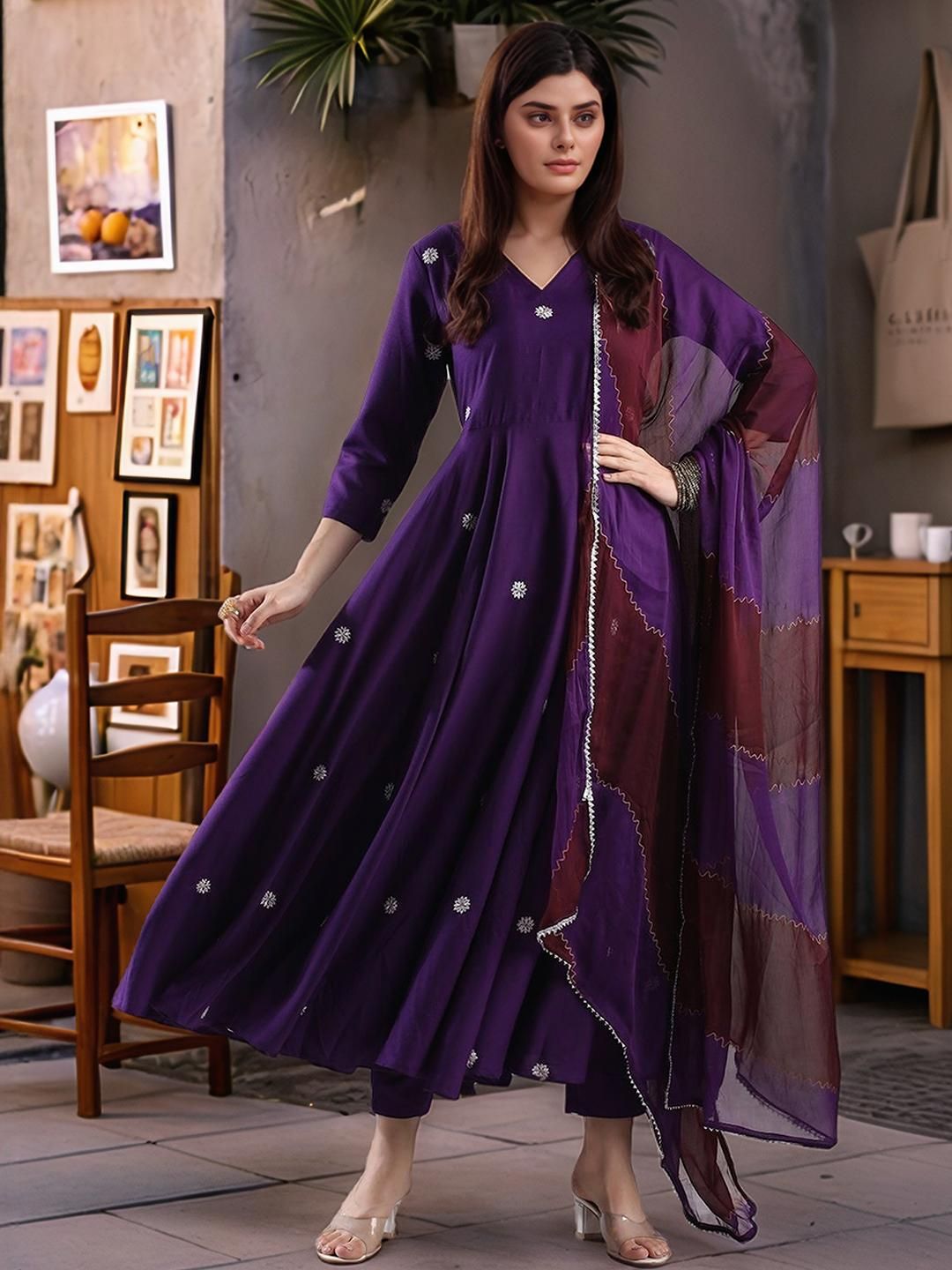 Aaghnya Women Embroidered Cotton Blend Kurta Sets
